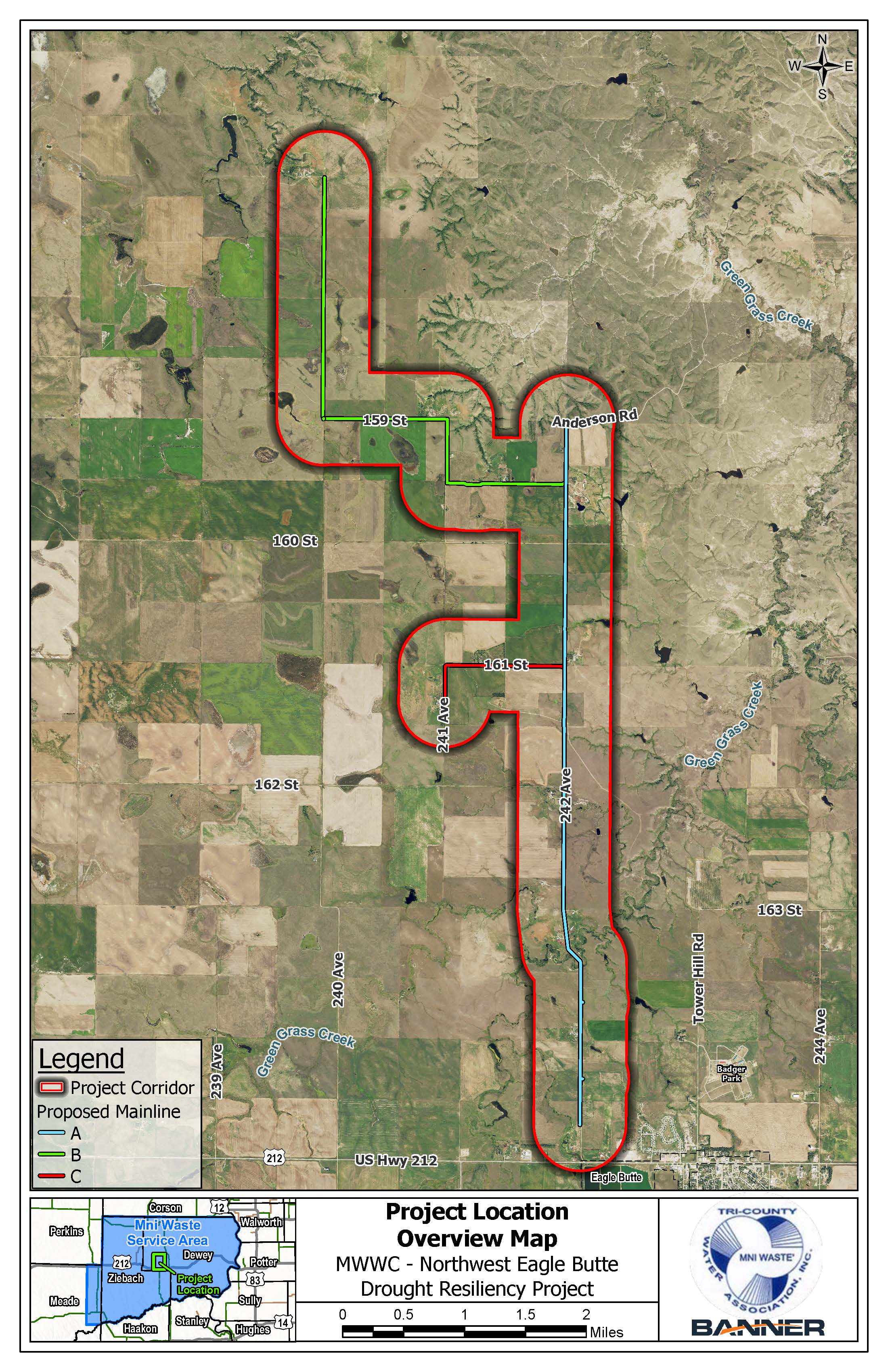 The proposed project would begin west of Eagle Butte, approximately 0.3 miles north of the intersection of Highway 212 and 242nd Avenue, extending north for about 12 miles. The final route is still being determined, but the pipeline will be located within the designated project area.