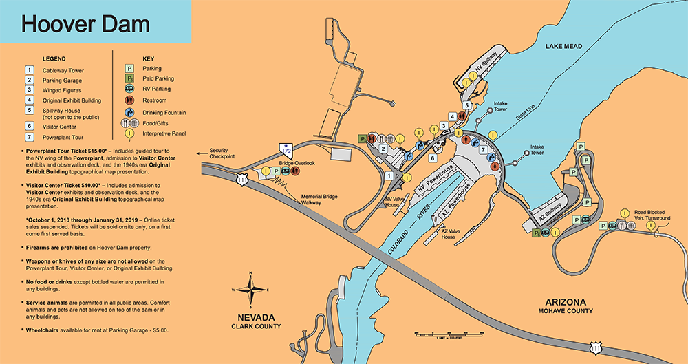 Hoover Dam Tours - The information that you need to plan your trip. Here is where you will find a description of the tour, admission fees, directions and more.