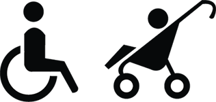 Stroller parking available on the plaza.