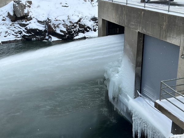Water needed to be bypassed during the full powerplant outage. Reclamation photo Once winter came water began to freeze in and around the hollow jet chamber of the bypass works. Reclamation photo