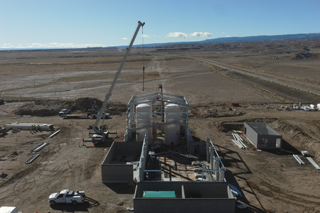 Tank installation at Pumping Plant 4. Reclamation photo Site Preparation for the Pilot Study Water Filtration System of the San Juan River. Reclamation photo