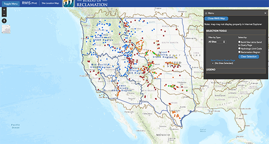RISE is an open data system for viewing, accessing, and downloading Reclamation's water and water-related data. Visit the RISE website.