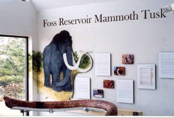 - At Reclamation’s Foss Reservoir Interpretive Center in northwest Oklahoma, a mammoth tusk is on display that weighs over 200 pounds and measures 8 feet 10 inches long. It is estimated to be around 20,000 years old. The tusk was exposed along the shoreline of Foss Reservoir in 2001 and excavated by a crew from Wichita State University under an agreement with Reclamation. After being professionally restored, the tusk was installed at the visitor’s center as part of an exhibit describing the mammoth, its habitat, and efforts to restore the tusk.
