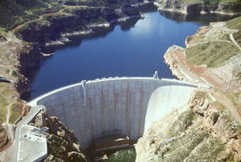 Aerial photo of Yellowtail Dam and National Park Service Visitor Center.