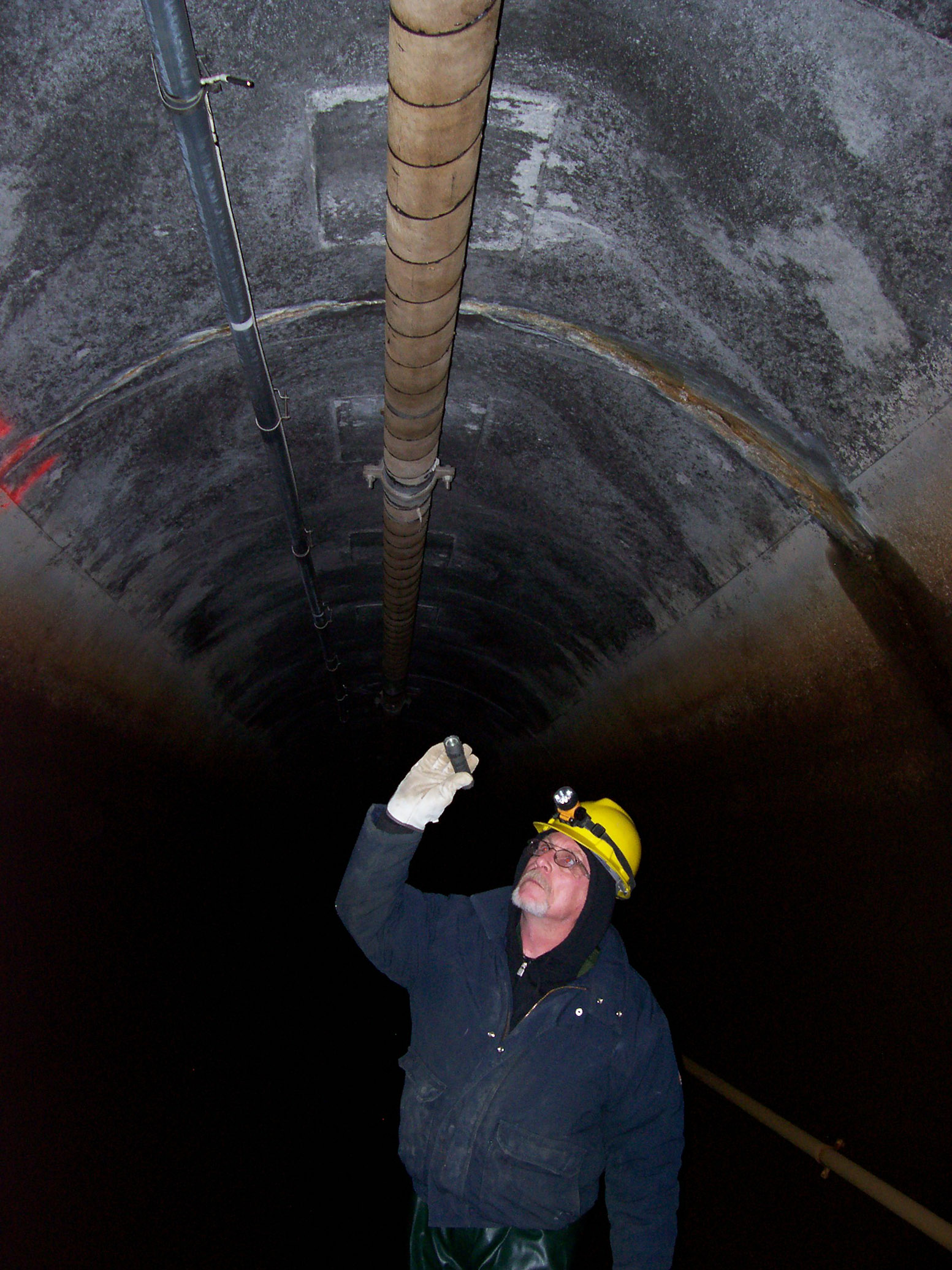 Green Mountain's Electrician Mark Stanfill deep in the Adams Tunnel under the Continental Divide working to fix a thermocouple device. Photo by Charles Young.