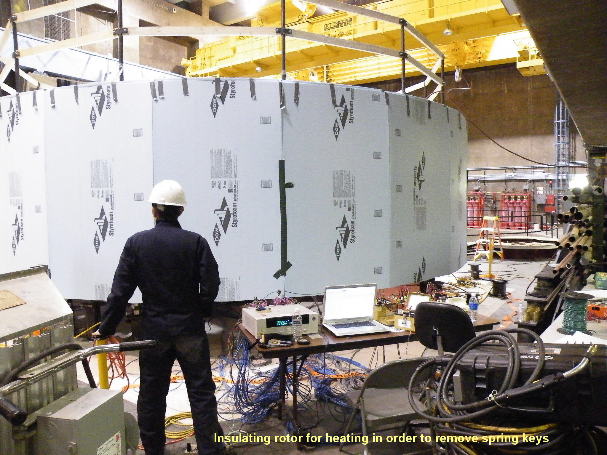 Insulating a Mount Elbert Powerplant rotor for heating in order to remove spring keys. Photo by Brad Littlepage.