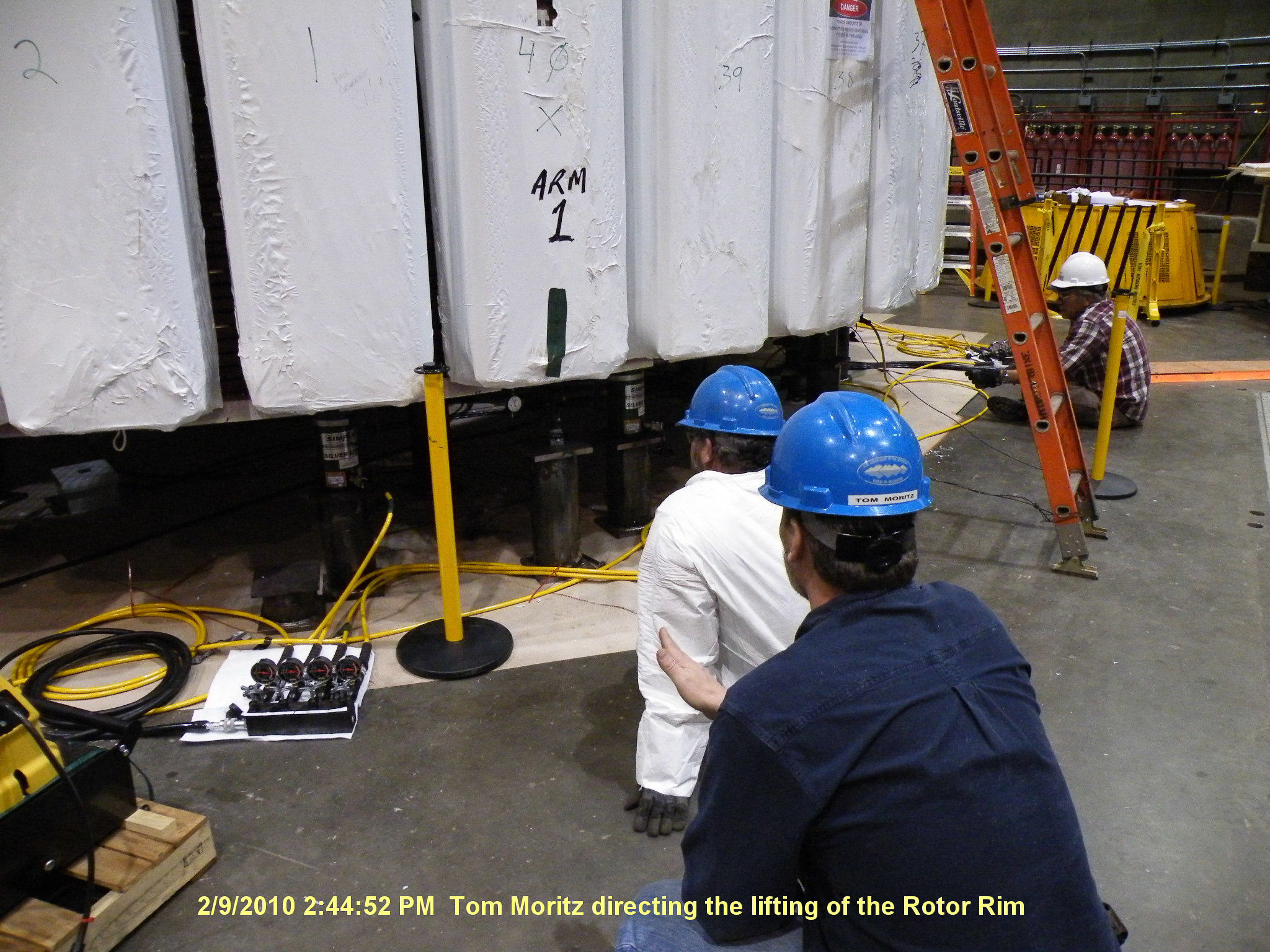 Tom Moritz directing the lifting of the Rotor Rim at Mount Elbert Powerplant. Photo by Brad Littlepage.