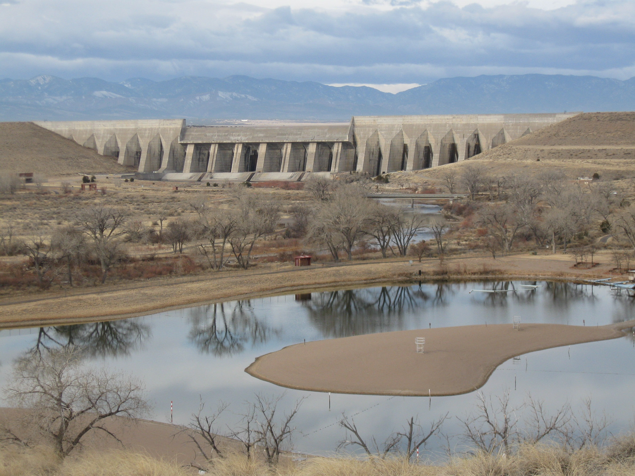 Pueblo Dam Spillway section as seen from downstream. Photo by Stanley Core.