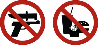 Bottled water is permitted. Food and drinks in sealed packaging allowed but may not be consumed in any building.