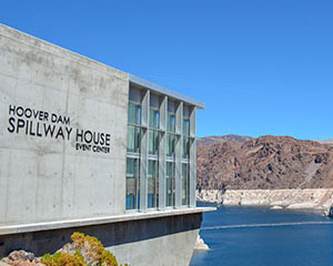 The Hoover Dam Spillway House building is located approximately 100 yards north of the dam, on the Nevada side of the canyon on the west bank of Lake Mead. Originally named the Snacketeria, the Spillway House was conceptualized in September 1986, and constructed between the fall of 1987 and May 1988. The Snacketeria served as a food and gift vending location for visitors for several years, but with the opening of the High Scaler Café near the parking garage in 2000, this operation was relocated to the new facility where the vendor also began selling memorabilia-themed items related to Hoover Dam.