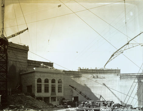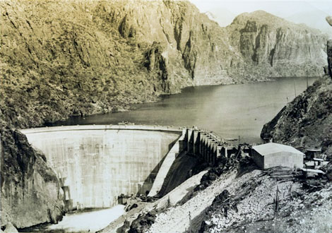 Stewart Mountain Dam is a 207-foot-high, reinforced concrete radius, thin-arch dam consisting of a single arch flanked on both sides by gravity buttresses or abutments, with a gravity overflow spillway on the east side. The main arch stretches 480 feet from buttress to buttress and varies in thickness from eight feet at the crest to 33 feet at the deepest foundation. Built between 1928 and 1930, it was the last of the dams built by the Salt River Valley Water Users Association to provide both power and irrigation water to Valley residents.Expansion of the power system increased electricity to both the urban and rural areas of the Salt River Valley. For the valley farmer, the benefits provided by the new development were many. By 1930, 2,000 farms had electricity with approximately 50 new connections per week. Power was used not only for pumping, but for cooking ranges, water heaters, ensilage cutters, milking machines, cream separators, feed grinders, incubators, brooders and a host of other farm appliances. Advertisements for the latest in home electrical appliances were prevalent in local newspapers as retailers championed the ways in which new products such as the vacuum cleaner and the washing machine could lessen manual work and improve the quality of life in the Valley.