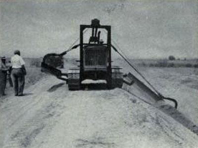 Canal Linings. Blade ditcher designed and built by project forces. An 8-foot blade is attached to the side of the crawler tractor. Photo by Harry W. Myers, Region III. Reclamation Photo.