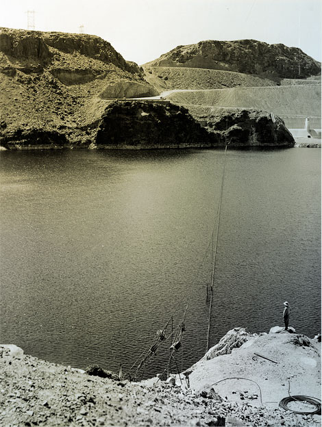 Cable across Lake Mead and security fencing, May 1940. Reclamation photo.
