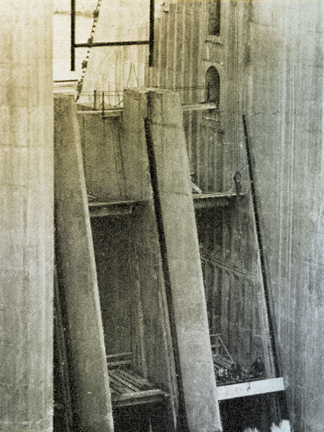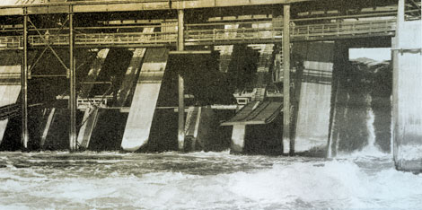 The concrete stop logs dropped into the spillway slots at Davis Dam.