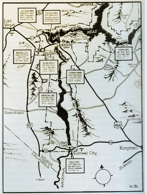 Several years before construction work began on the dam, George F. Baggley, superintendent of the Lake Mead Recreation Area (of which this Davis Dam area is a part), set his crews to work investigating the shores.