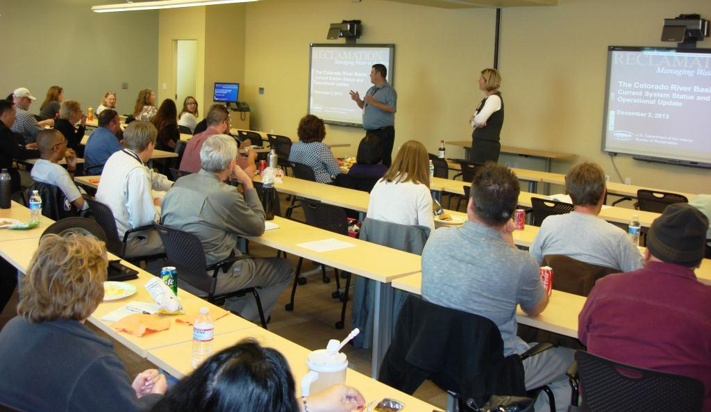 The LC Region has a diverse work group which requires unique and varied technical training. In order to accomplish this we provide and/or host technical training such as: Project Management, CPR and First Aid, Fire Extinguisher training, Confined Space Training, File Station and Records Training, CISCO ONS-SONET Training, Contracting Officer Representative (COR) Training, and other safety related training. Technical training is supported at the LC Region training center. We are equipped with 48 laptops to enable all types of technical training. If you are interested in attending or holding a technical training, please don't hesitate to contact us. The photos below demonstrate a few examples of some of the courses that take place at the LCTC. |