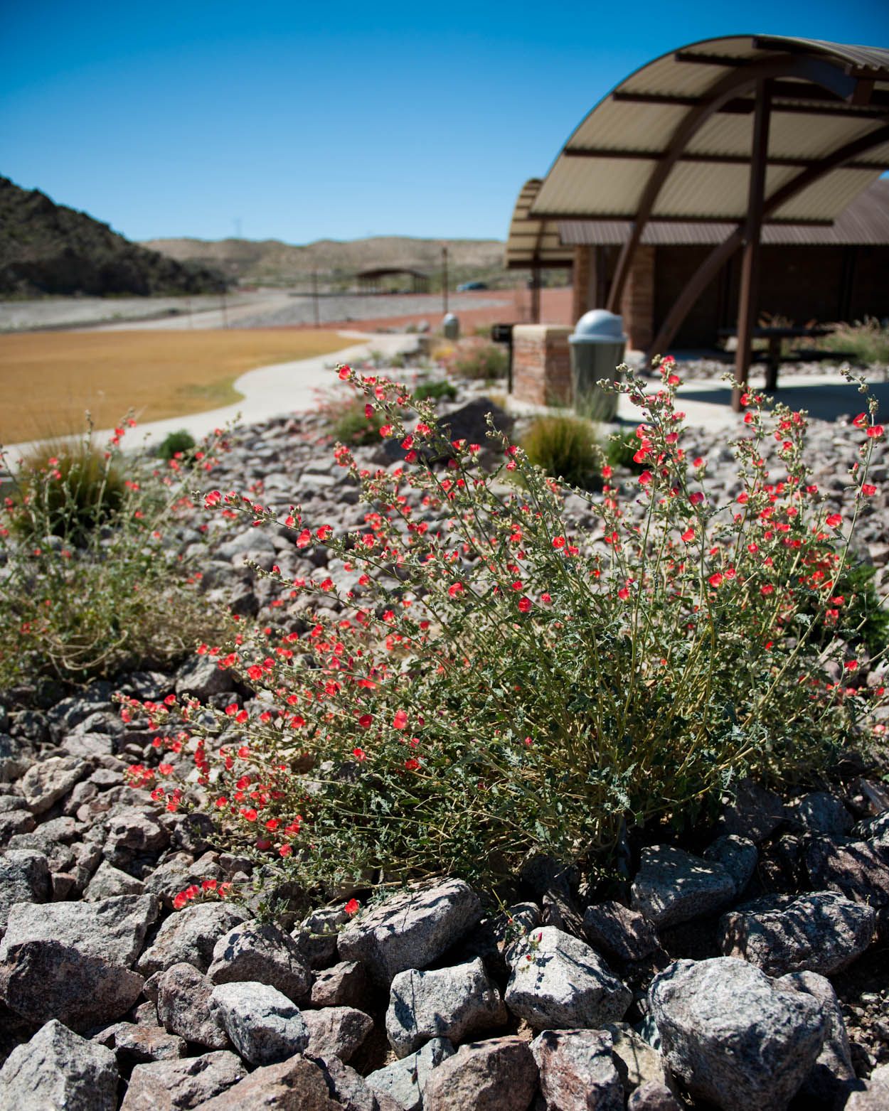 A desert globemallow highlights a Heritage Park picnic area. Reclamation photo by Alex Stephens |