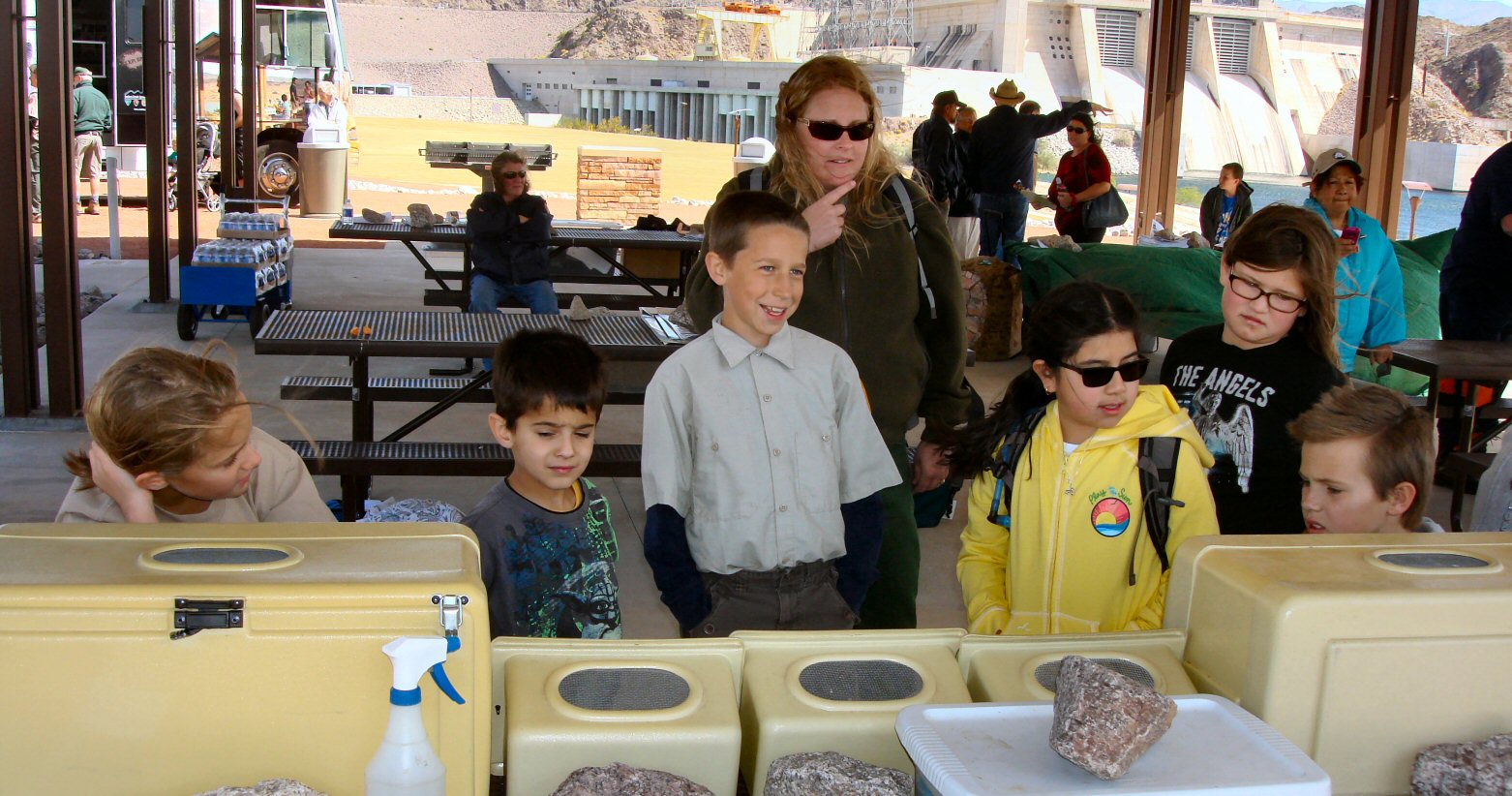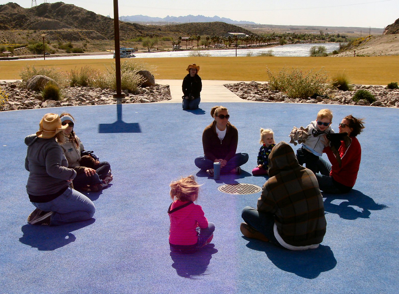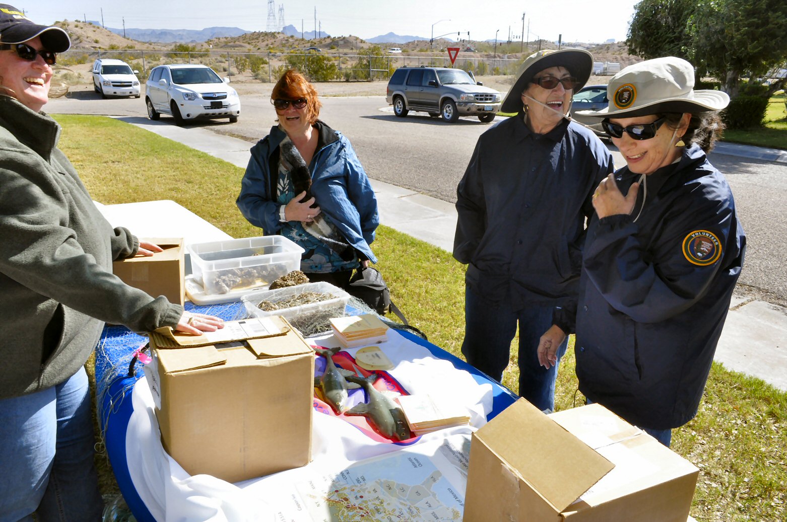 Informational displays on both sides of the river – at Davis Camp in Arizona and at the Greenway Heritage Park in Nevada – featured experts from local, state and federal agencies sharing program information that focused on the role of outdoors enthusiasts in protecting and respecting natural resources. A wide variety of visitors – ranging from a Ft. Mohave charter school teacher and her group of student volunteers to Cottonwood Cove camp hosts and a young family visiting from as far away as Pasadena – enjoyed the exhibits…as well as some unexpected exercise as they sprinted after runaway brochures and field guides torn from their grasp by sudden wind gusts.