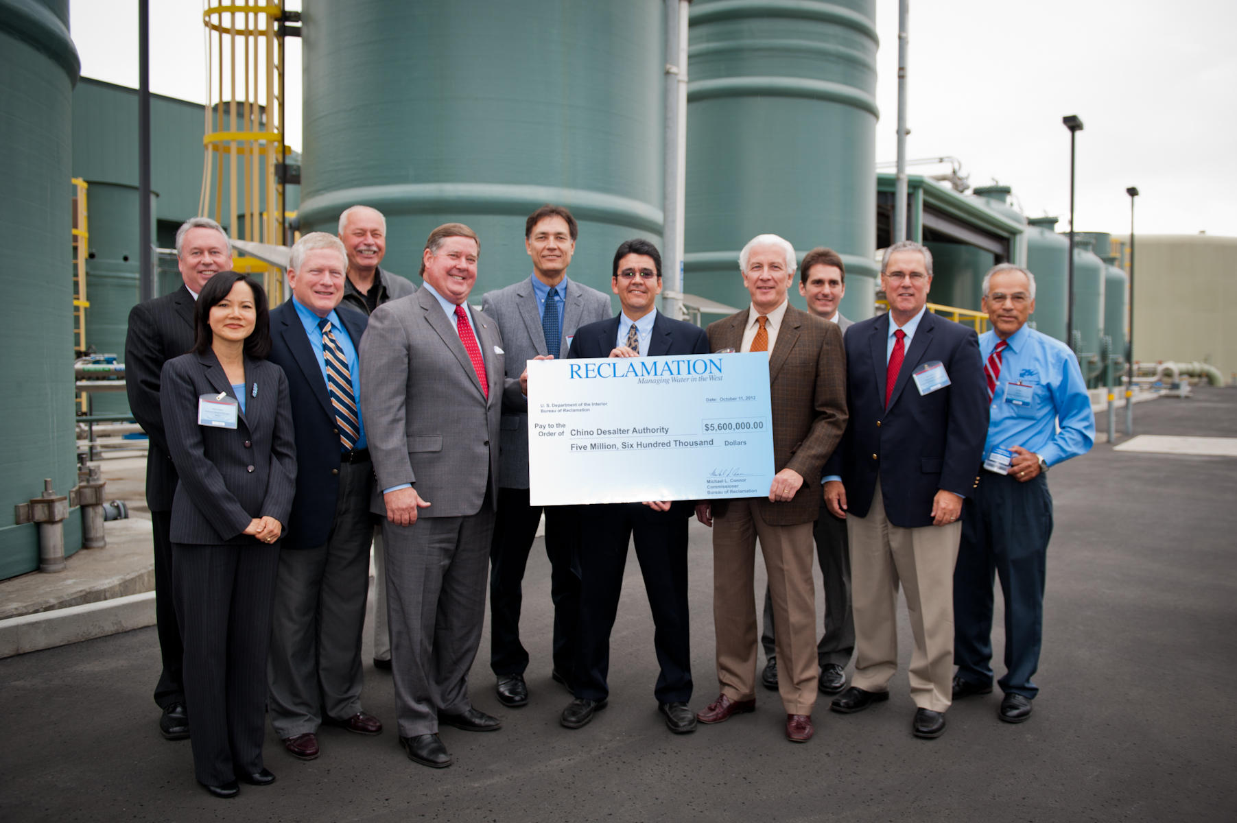 On October 11, 2012, Bureau of Reclamation Commissioner Michael Connor, Lower Colorado Regional Director Terry Fulp, and Southern California Area Office (SCAO) Manager Bill Steele celebrated accomplishments with partners at dedication ceremonies for two innovative water reuse facilities in southern California.
