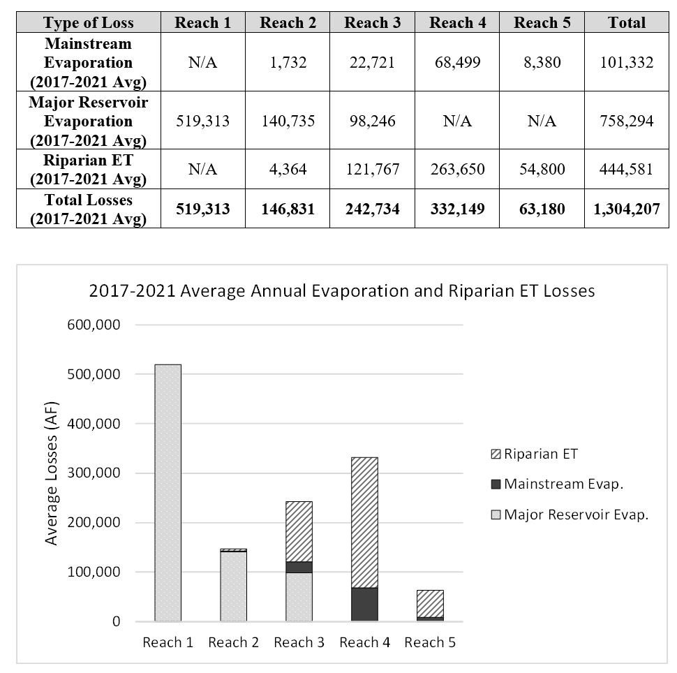 Estimates of lower Colorado River mainstream evaporation and riparian ET losses provided in the report were divided into five reaches, as follows: