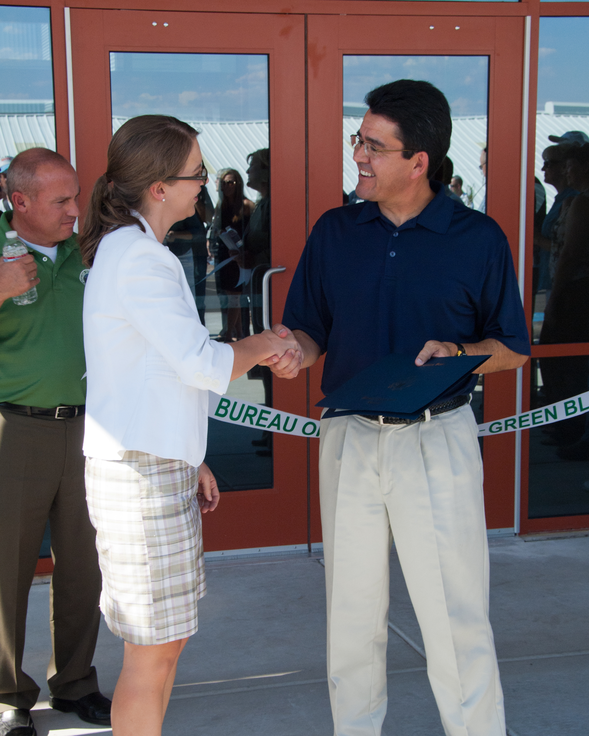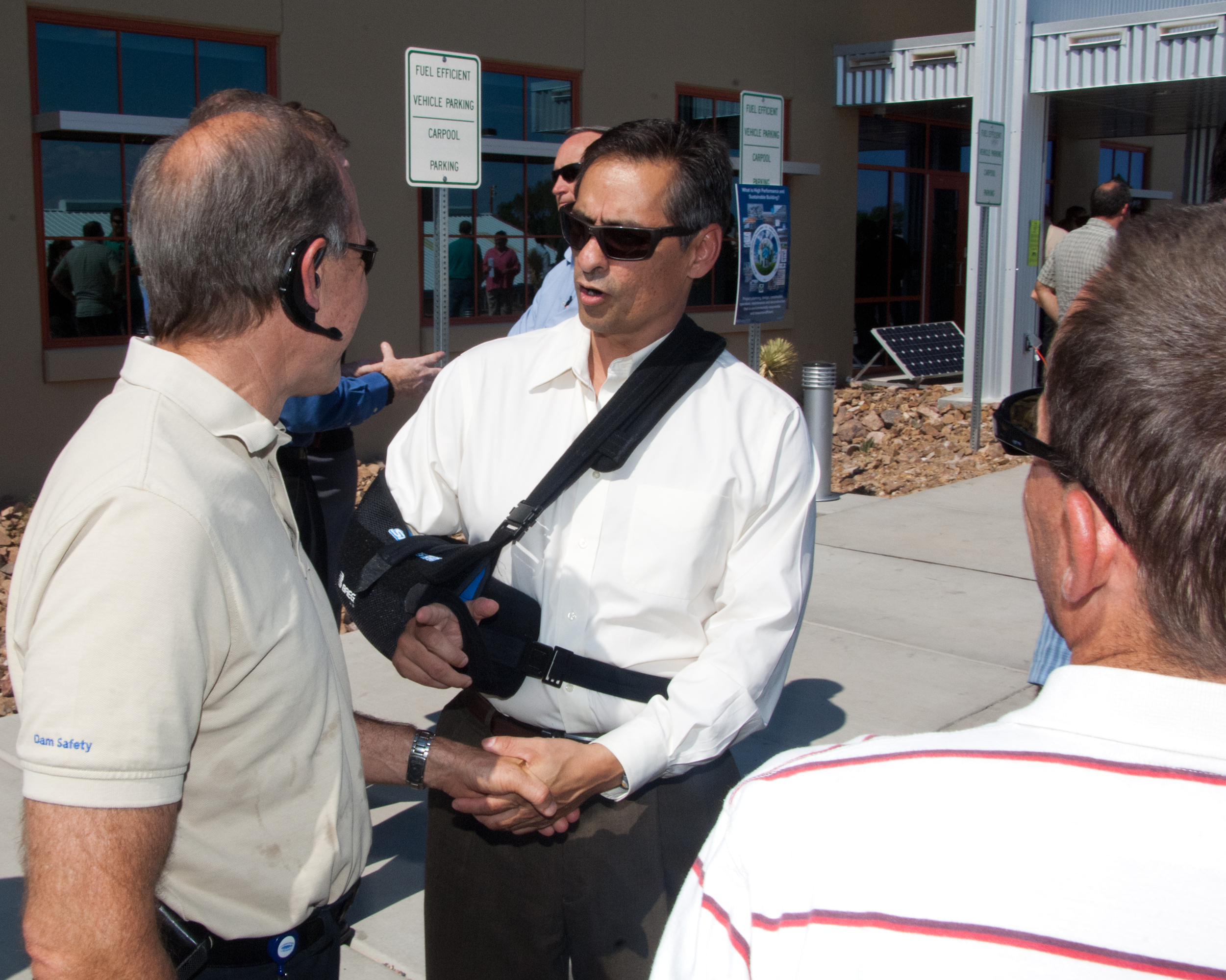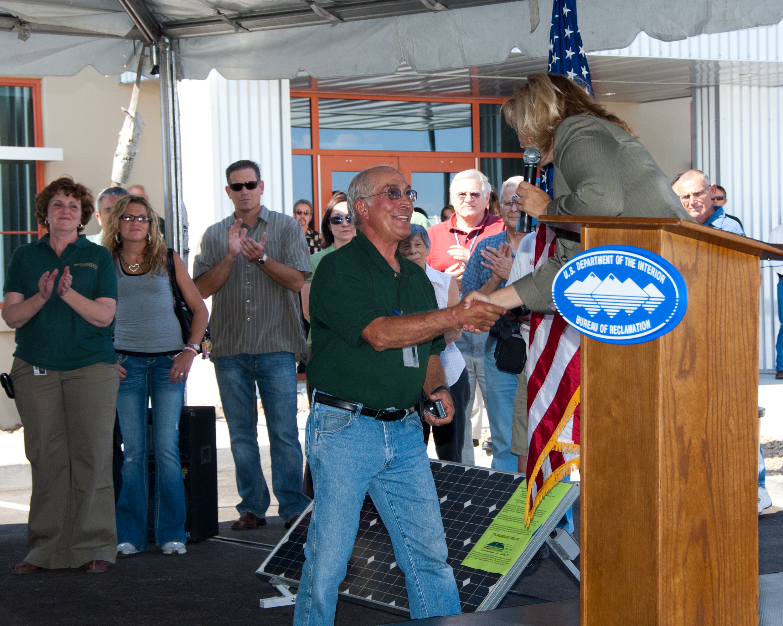 On September 8, 2011, approximately 140 staff, dignitaries and local residents joined Bureau of Reclamation Commissioner Mike Connor and Lower Colorado Regional Director Lorri Gray-Lee in a dedication/ribbon-cutting ceremony to open the agency’s first Green Building. These images portray some of the festivities, and a video of the event is also available.