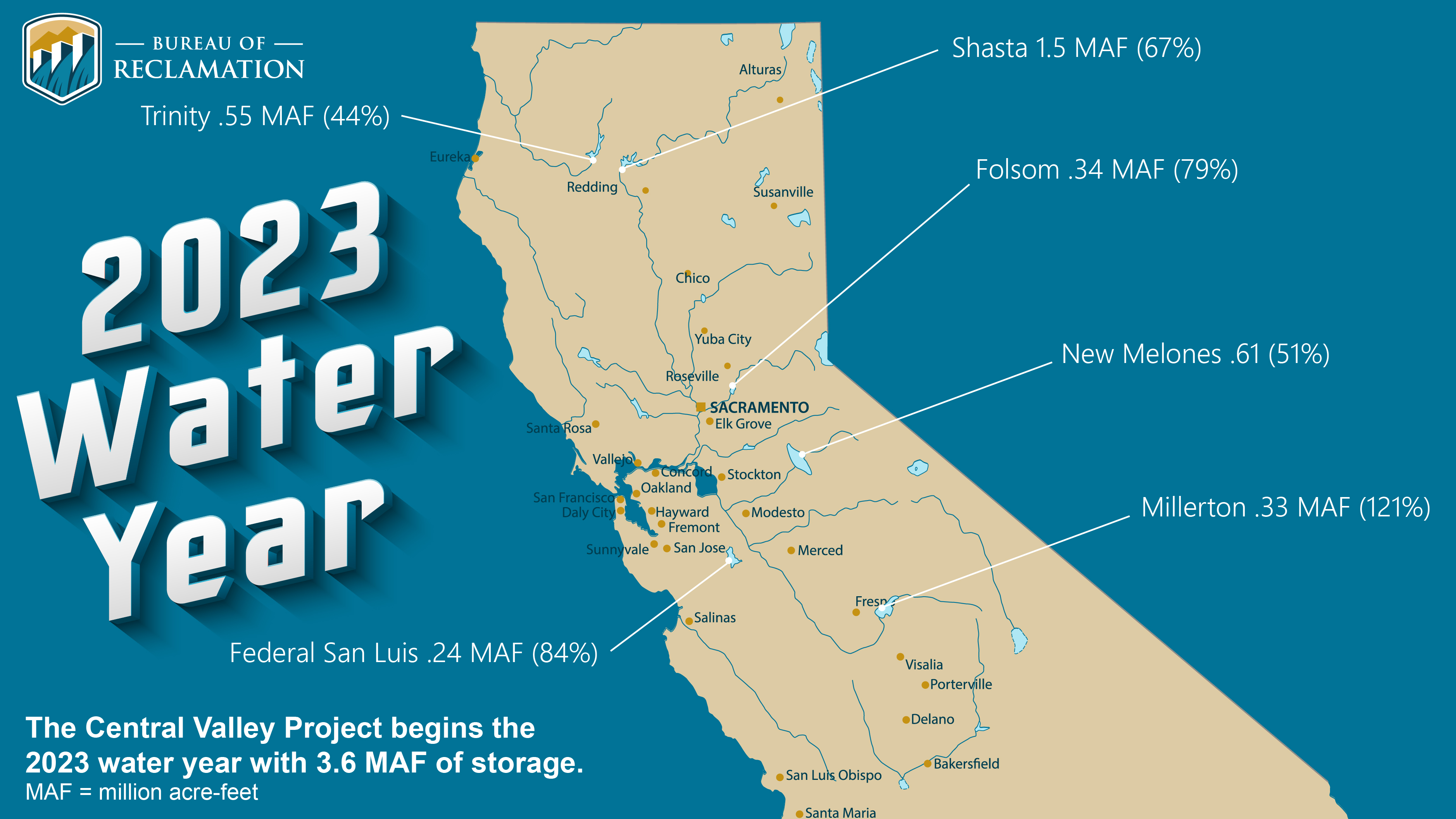 Water Year 23 graphicRepresentatives from across Reclamation attended the 2023 Construction and Geology Workshop at B.F. Sisk Dam and San Luis Reservoir in the California-Great Basin Region March 7-9.
