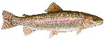 Rainbow Trout - Rainbow Trout fishing is great at New Melones Lake. Trout fishing in the lake is done by trolling the deep, colder waters; generally around 40 to 50 feet (12 to 15 m) deep near the area of the dam. Rainbows of up to 5 lbs (2 kg) have been landed, with average weights being 3 to 4 lbs (1.3 to 1.8 kg). Bank anglers often catch trout in the areas of Angel's and Murphy's Creeks.