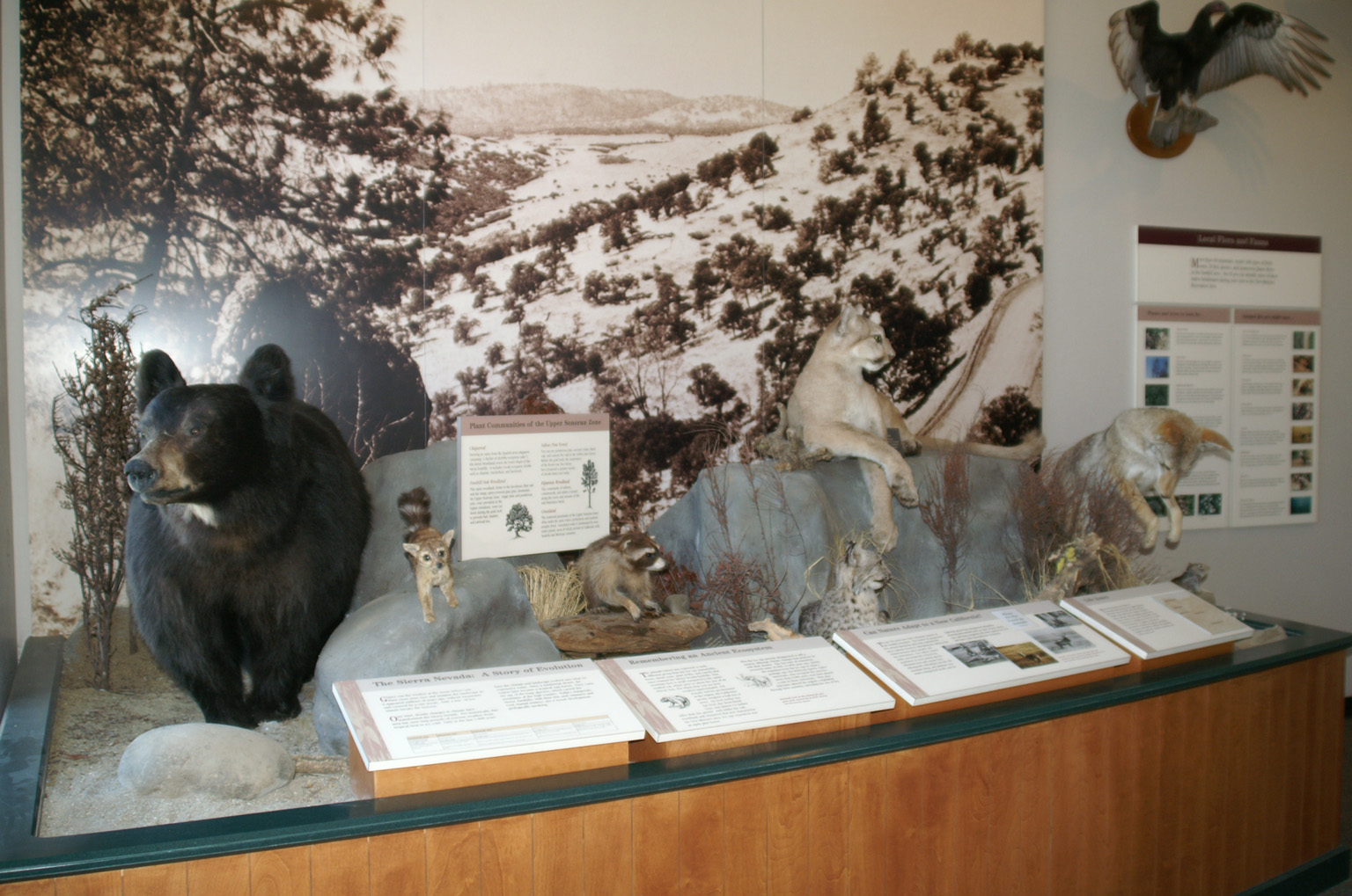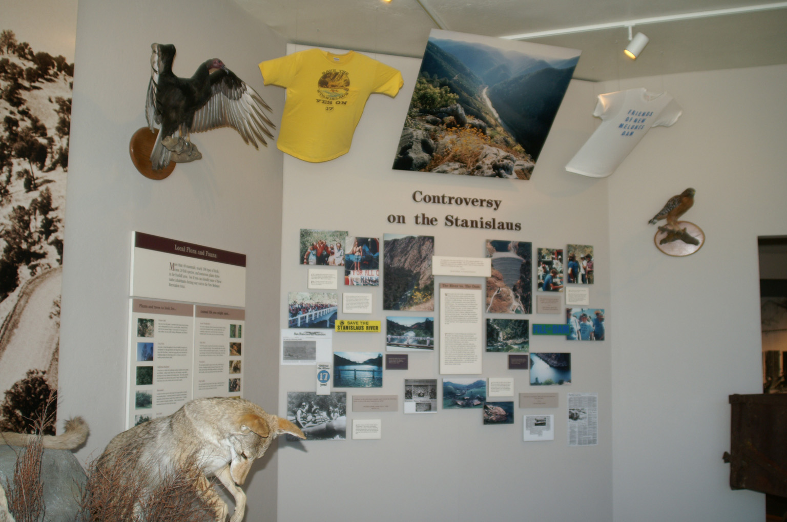 Visitors can view some of the wildlife that inhabits the New Melones Lake area. A black bear, coyote, mountain lion and ring-tailed cat are a part of our display on the animals of the foothills ecosystem.