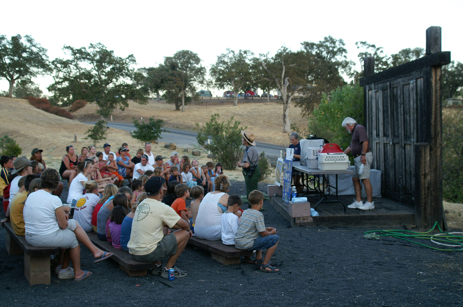 Evening programs may include a slide presentation, music, stories and activities about the cultural and natural history of New Melones Lake. Topics have included: eagles, bats, mammals, Mark Twain and the Jumping Frog, and the California Gold Rush.