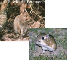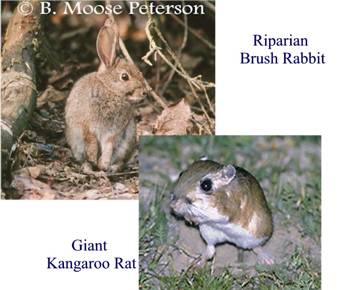 Riparian Brush Rabbit (top) and the Giant Kangaroo Rat (right). Some of the many endangered
