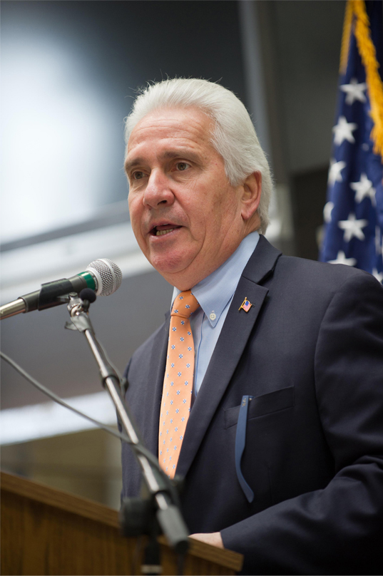 Connor speaking at the