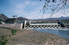 Facility: The Marble Bluff Dam and Pyramid Lake Fishway, Washoe Project, was constructed between 1973 and 1975. Marble Bluff Dam is located on the Truckee River approximately 50 miles downstream of Reno, Nevada and approximately 3 miles upstream of Pyramid Lake. It is a zoned earthfill structure with a height of 22 feet and crest length of 1,622 feet, and it has a capacity of 19,700 cubic feet per second through the spillway.
