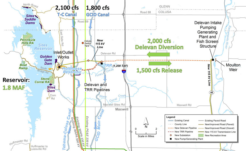 The existing Tehama-Colusa Canal would be used to help convey Sacramento River water to Sites Reservoir