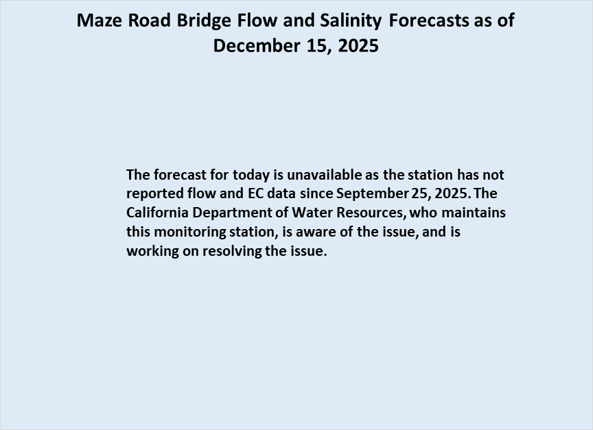 This web page is updated daily. The following flow and salinity forecasts for San Joaquin River at Maze Road Bridge are provided by using regression method.