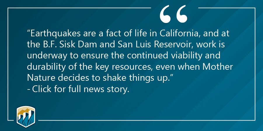 B.F. Sisk Dam and San Luis Reservoir are located in an area of high potential for earthquakes from identified active faults, primarily the Ortigalita Fault, which crosses the reservoir. Past investigations indicated that sections of the dam are founded on liquefiable and soft soils. During a seismic event, sections of the dam could slump below the water or allow cracking to develop through the embankment, which could lead to dam failure.