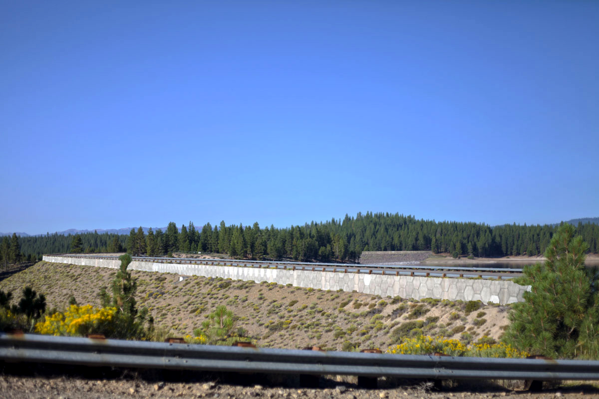 Stampede Dam is located on the Little Truckee River, about 10 miles northeast of Truckee, California.