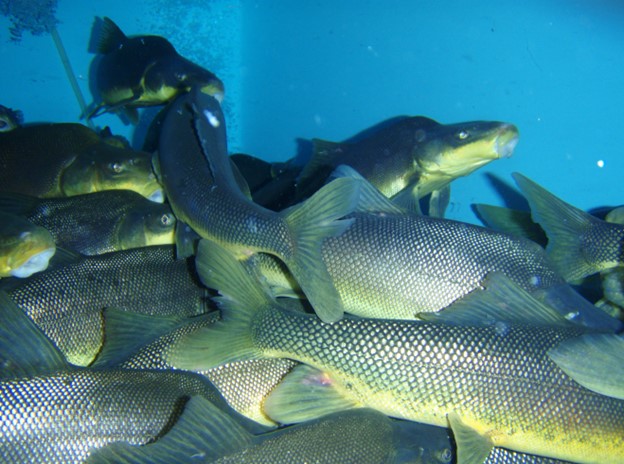 While hundreds of thousands of razorback sucker are found throughout the basin, the vast majority originate in hatcheries and are stocked by the truckload in various locations in several Upper and Lower Basin states. Though these fish readily spawn and produce larval fish every year, the larvae rarely survive to adulthood.