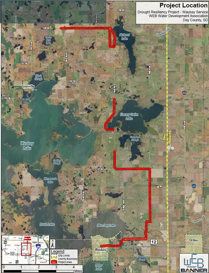 DAY COUNTY, S.D. — The Bureau of Reclamation and WEB Water Development Association, Inc. (WEB) are seeking public input on the Waubay and Day County Drought Resiliency Project, a federally supported initiative to enhance reliable water access in Day County, South Dakota. This project proposes the construction of approximately 17 miles of rural water pipeline, improving long-term water supply reliability for the region, including the Lake Traverse Reservation. Public comments are accepted through August 28, 2025.