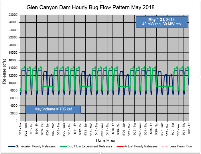 The Bug Flow release pattern for May: https://www.usbr.gov/uc/water/crsp/studies/images/BugFlowExp-May2018.png