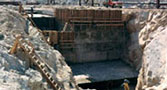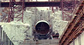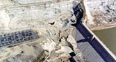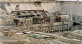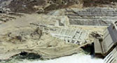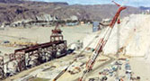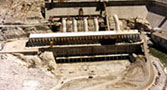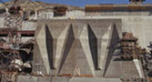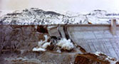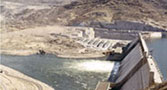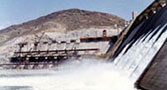 Bureau of Reclamation logo, A dam with water flowing over it.
