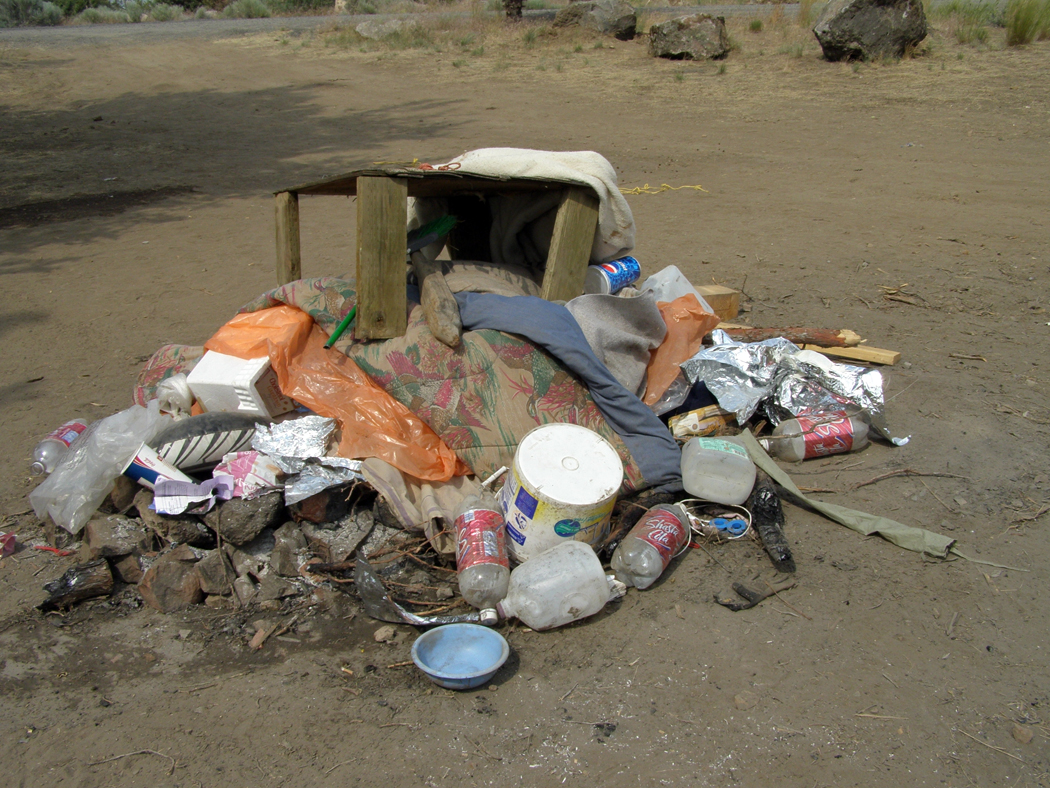 | Caption for the Photos: U.S. Forest Service volunteers took these photos of the damage, shoreline degregation, and dumping taking place at Haystack Reservoir's south shore. |