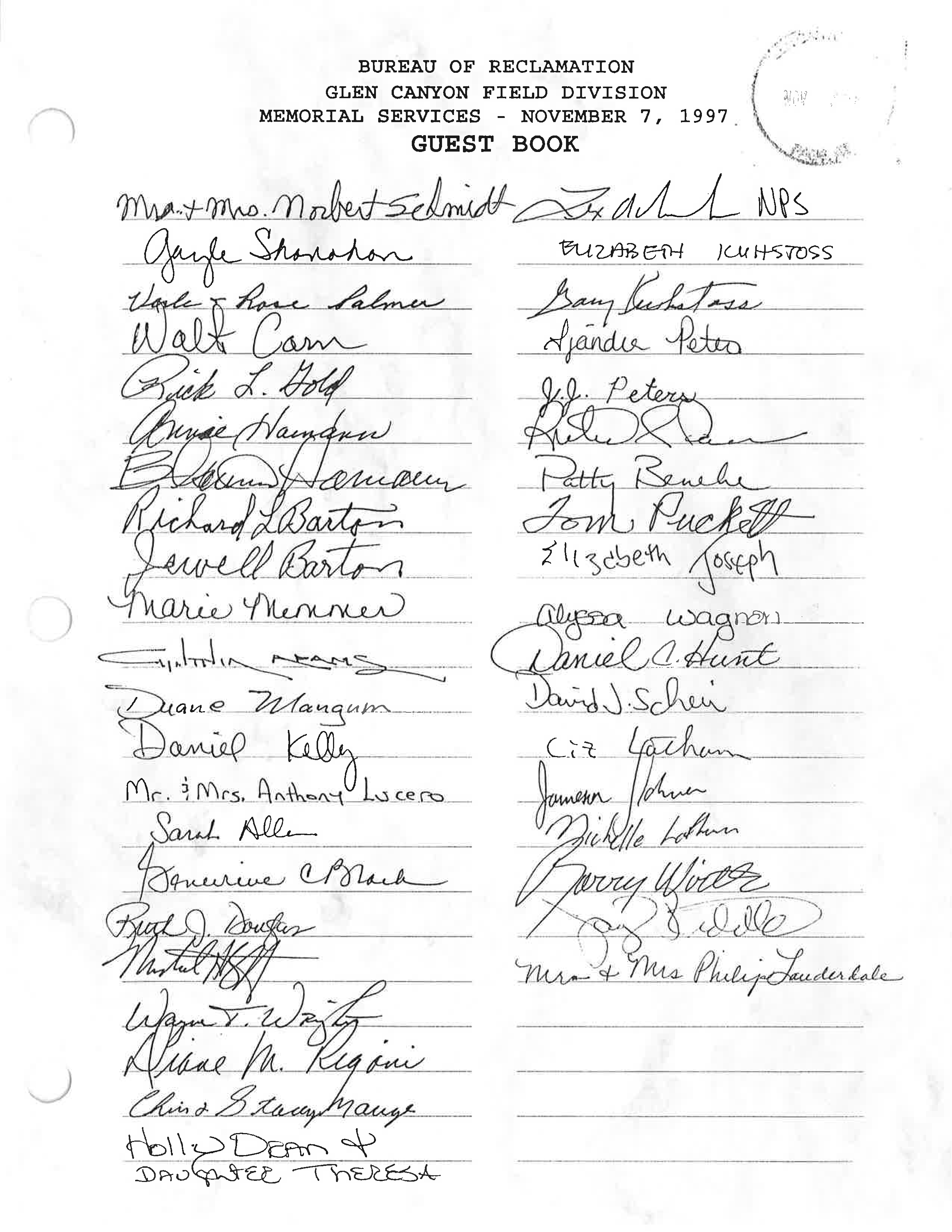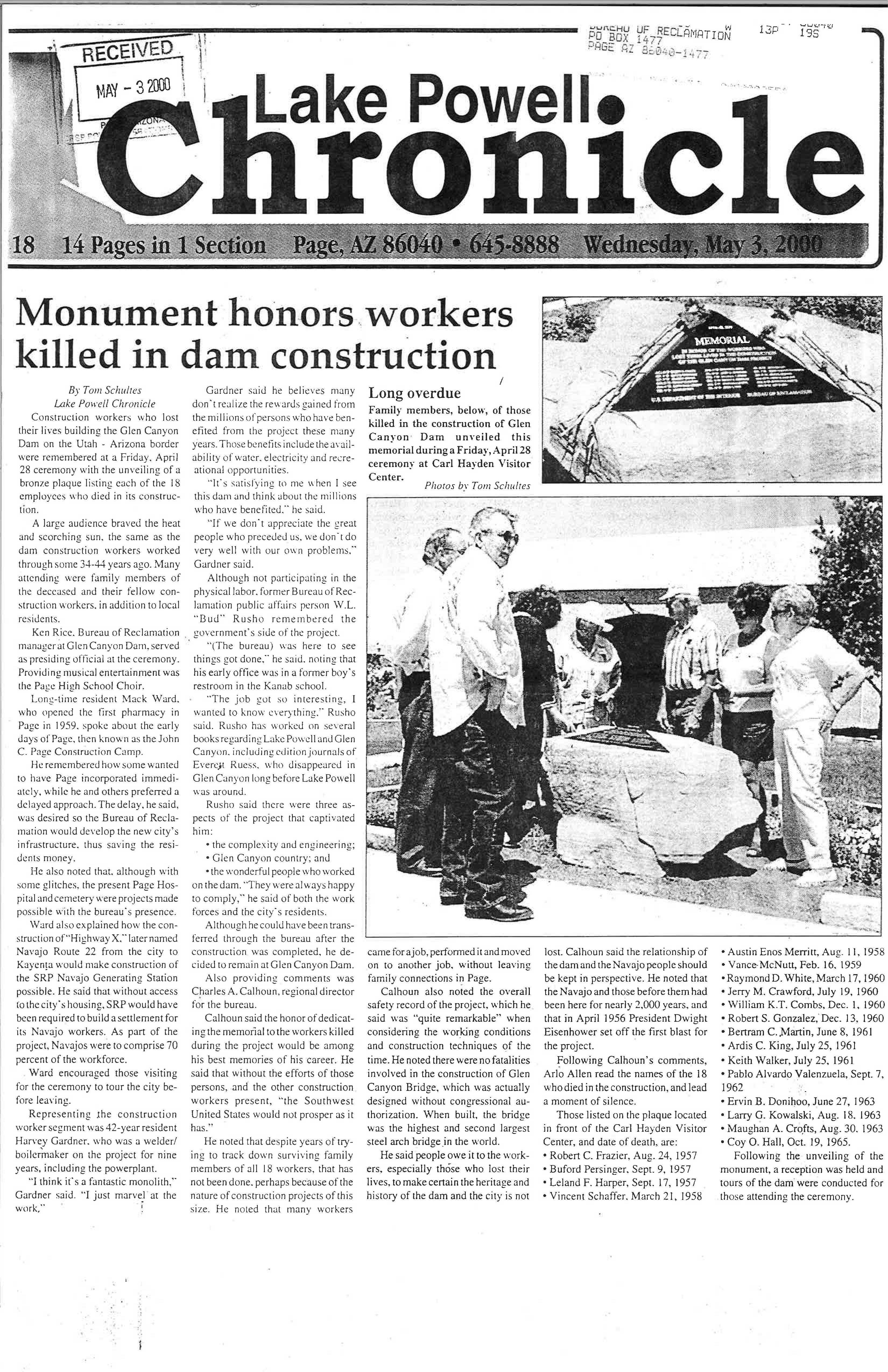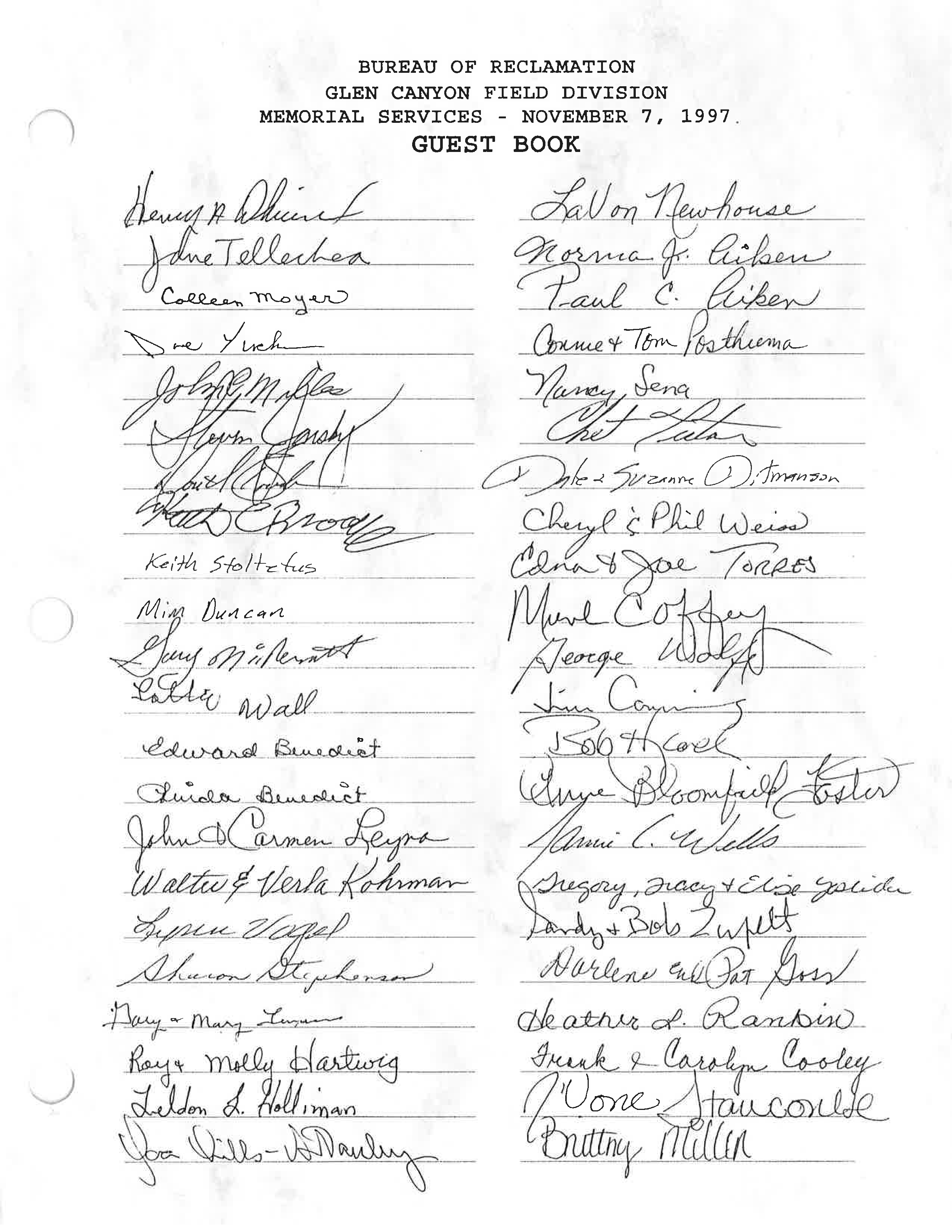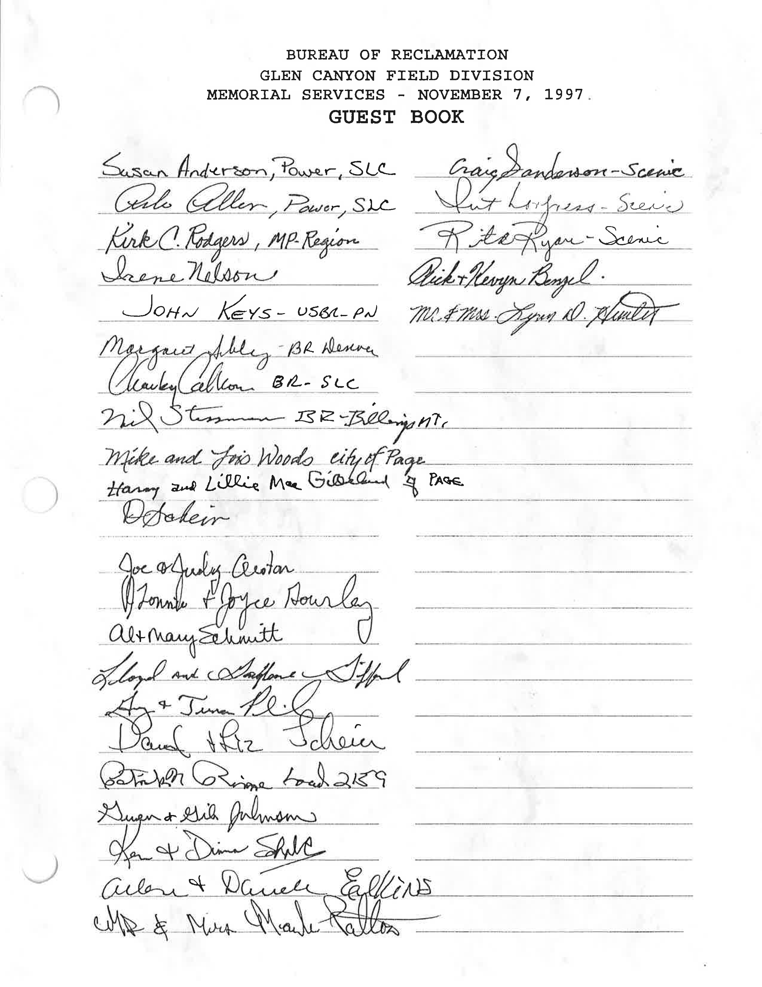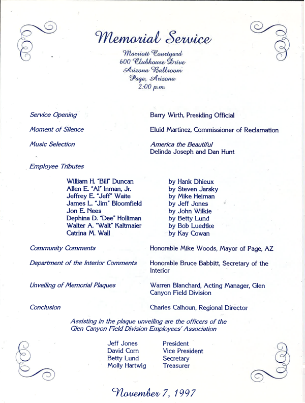 Thank you to Reclamation's Power Office and Glen Canyon Dam Field Division for maintaining and providing archived memorial materials