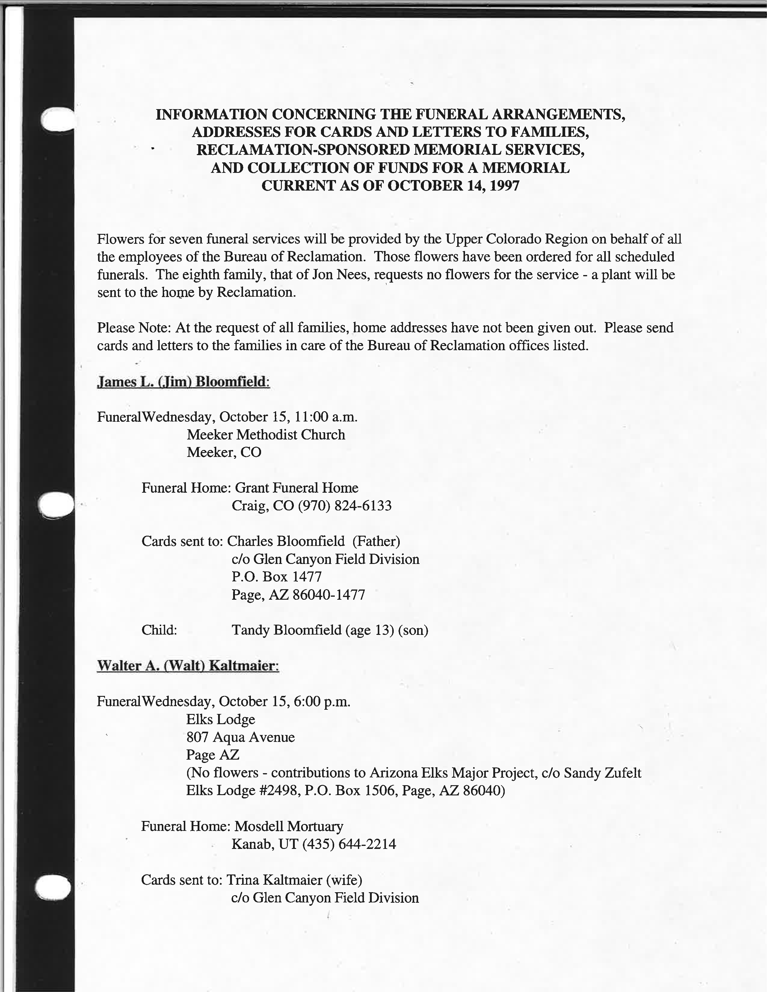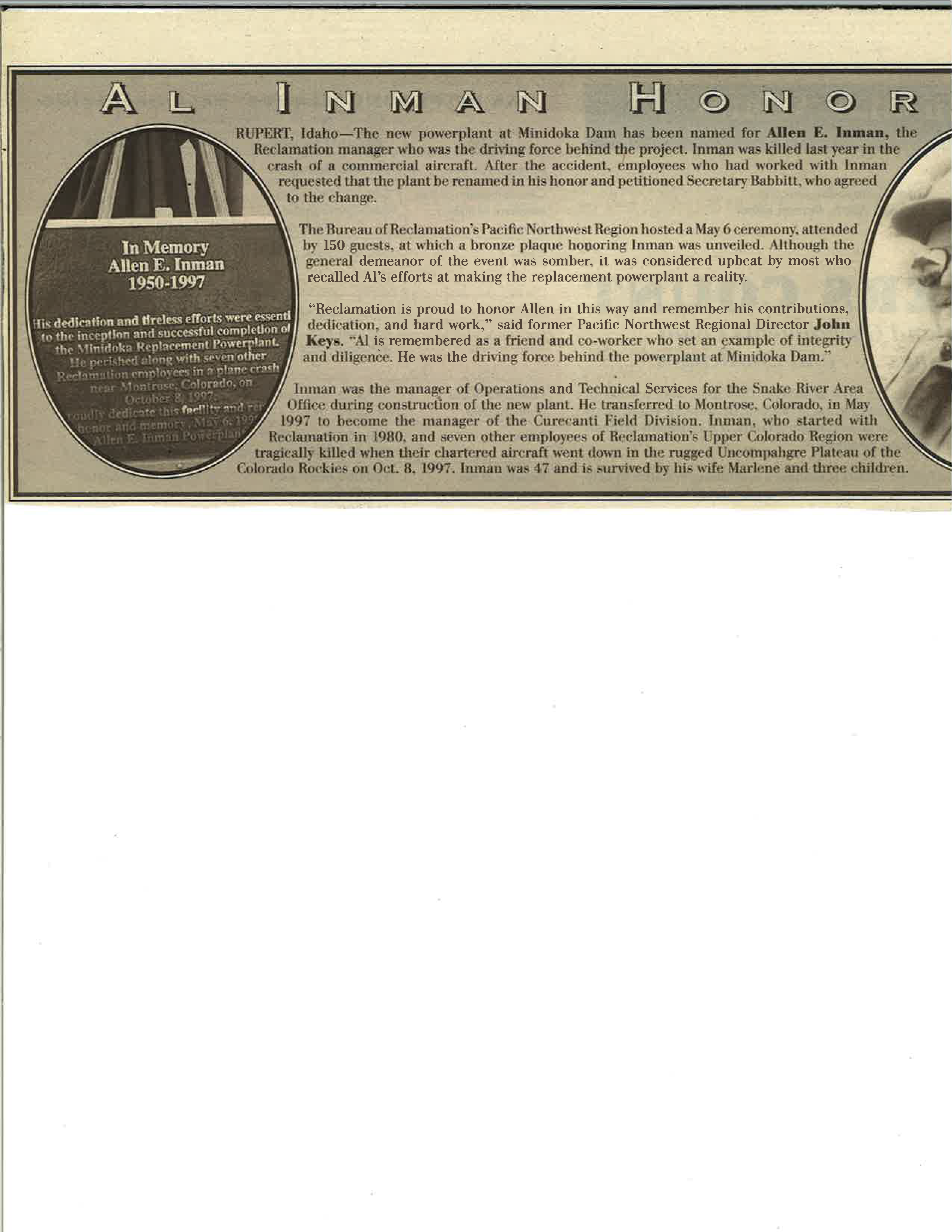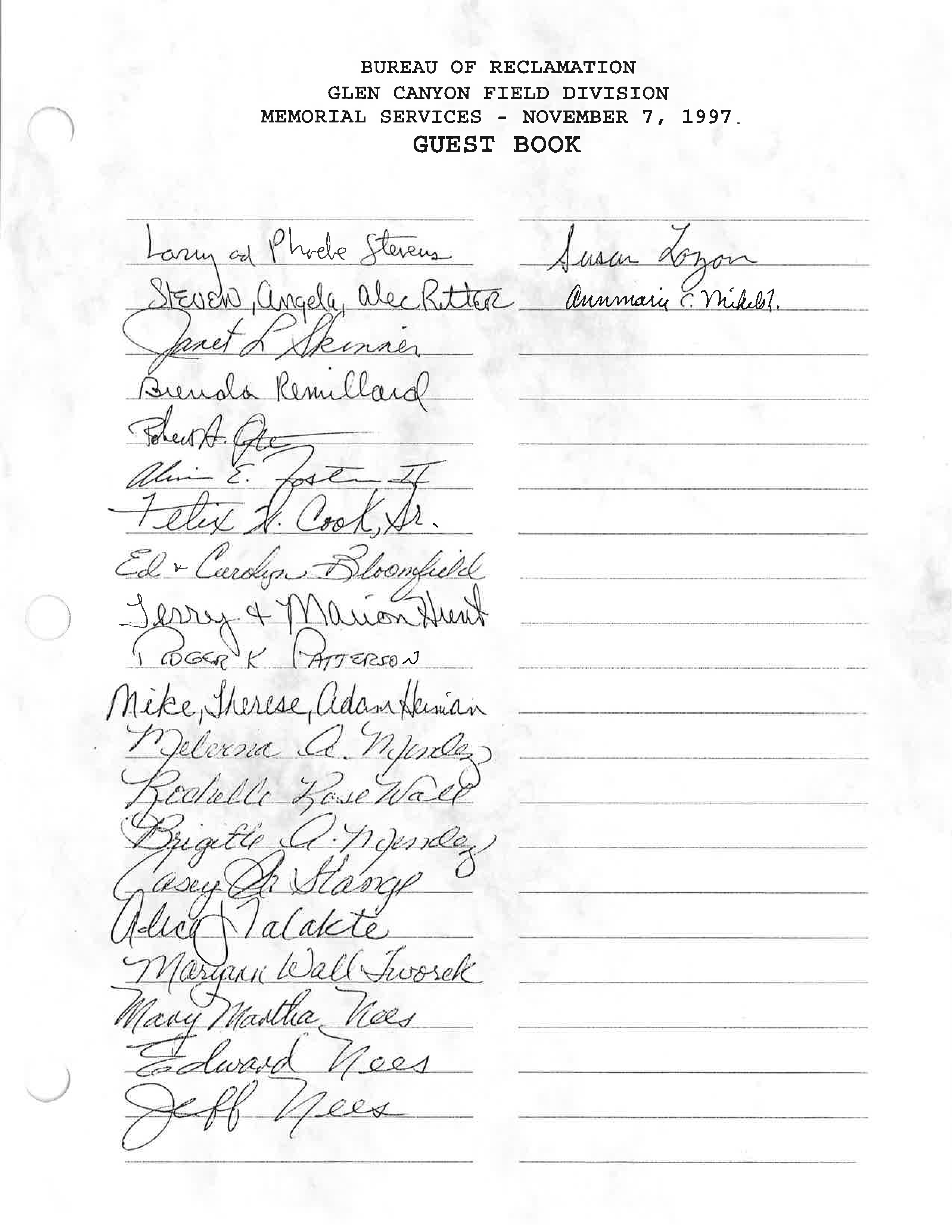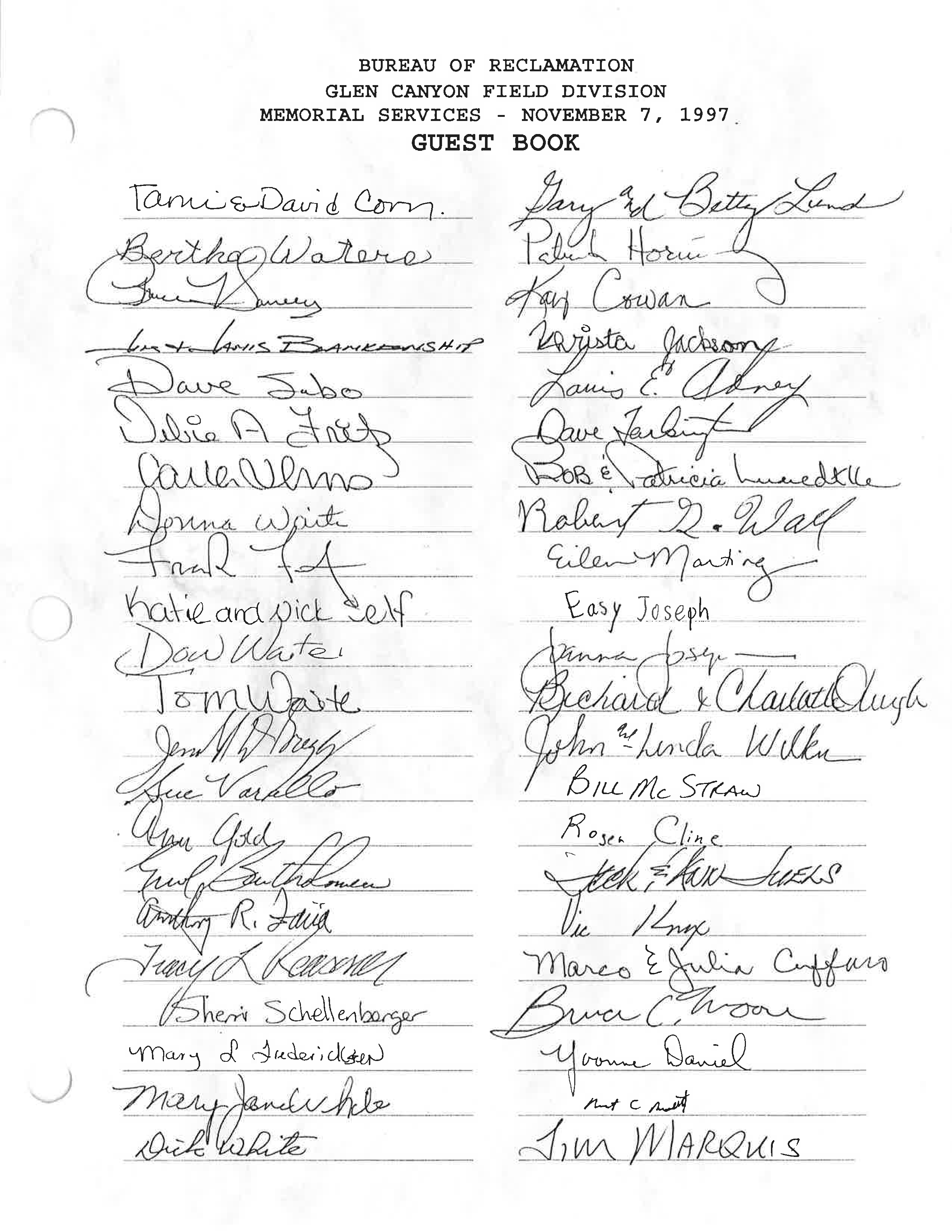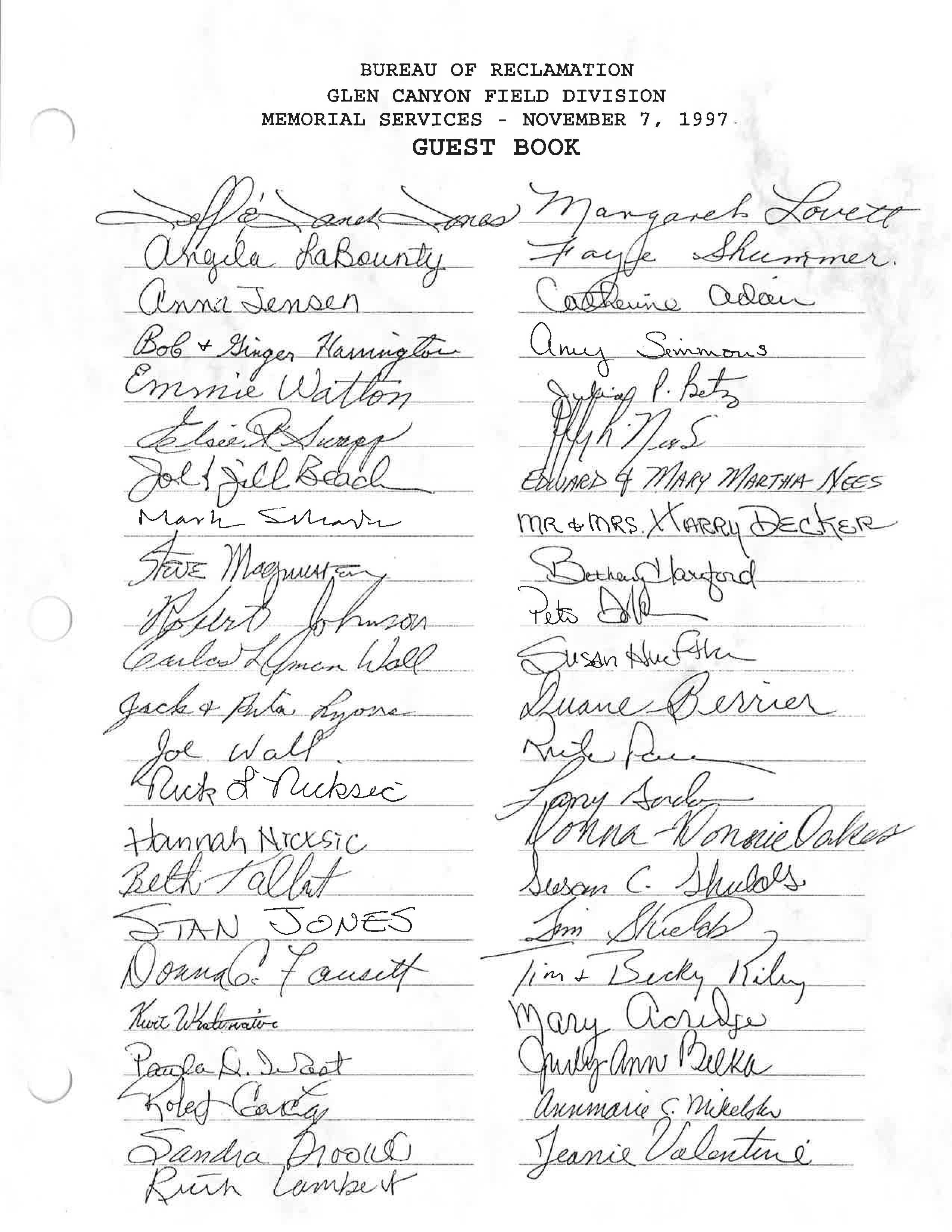 Thank you to Reclamation's Power Office and Glen Canyon Dam Field Division for maintaining and providing archived memorial materials