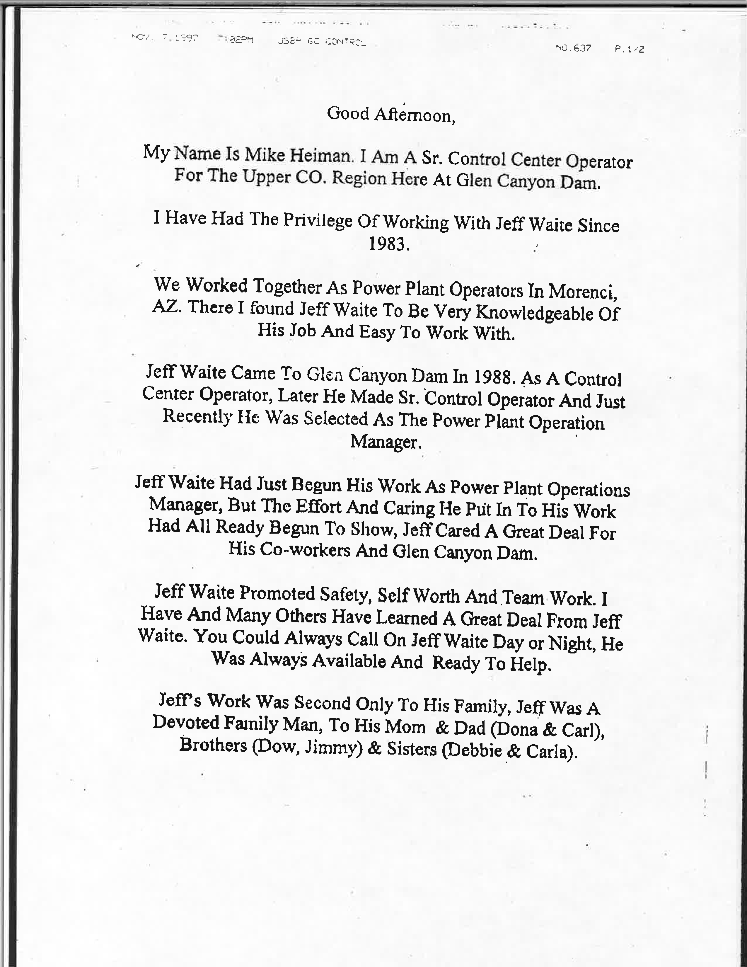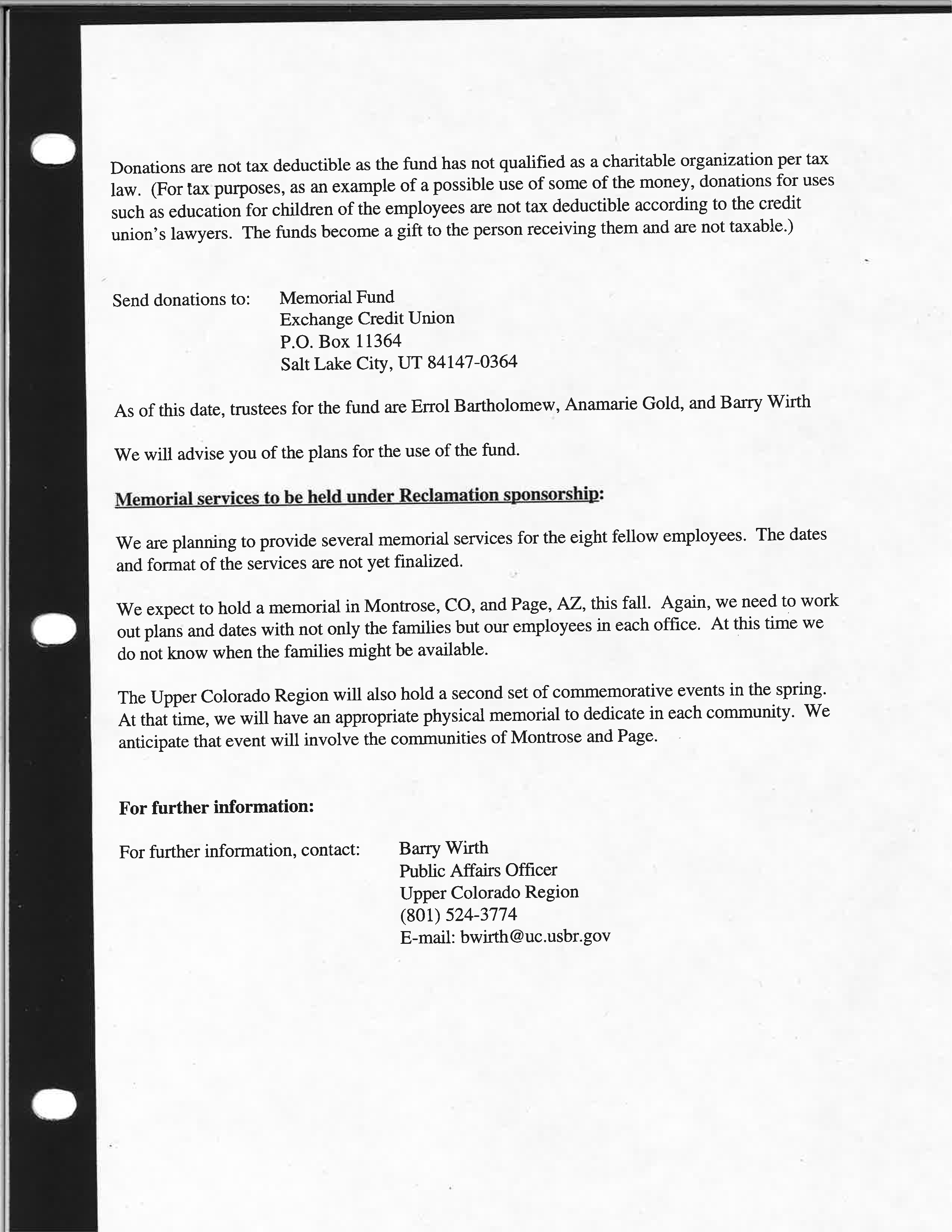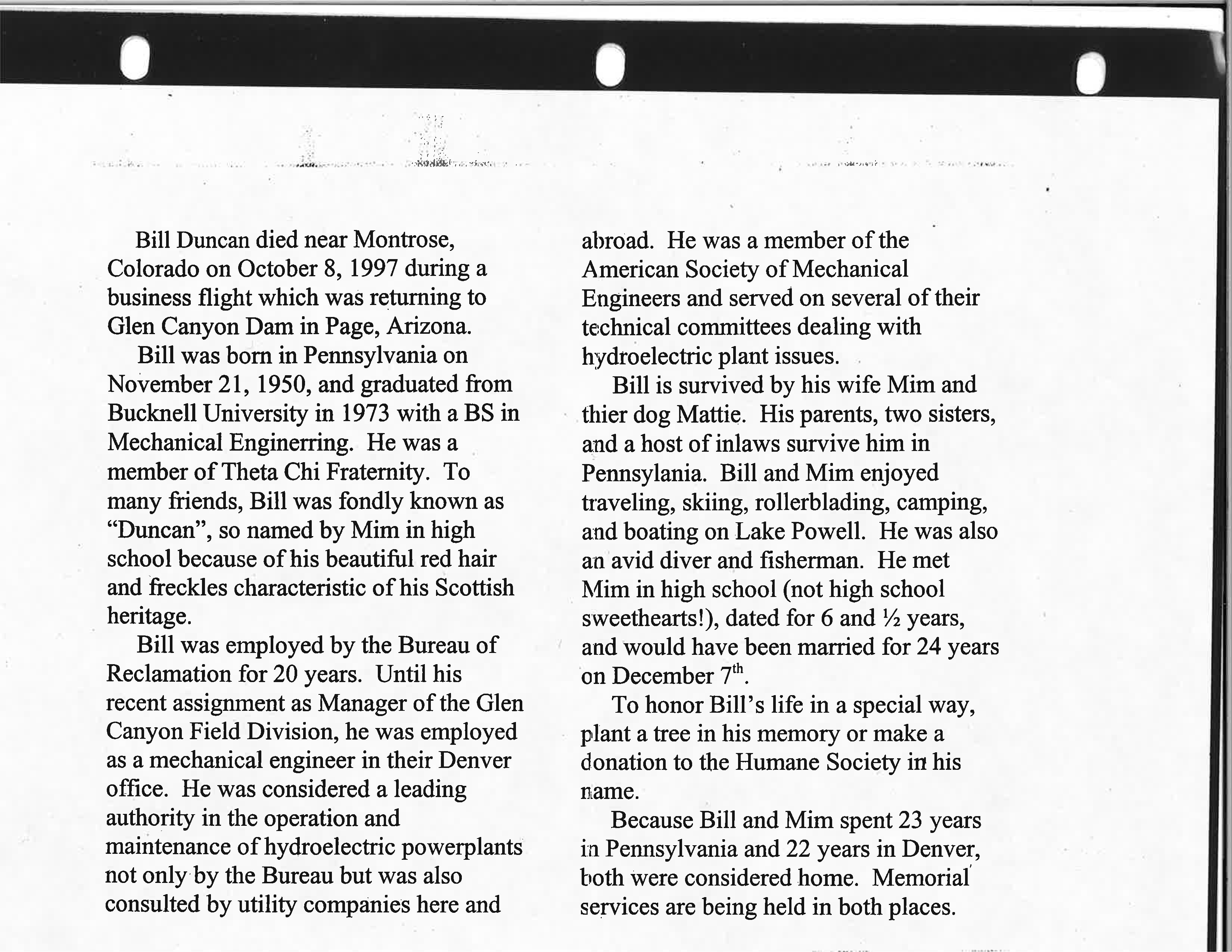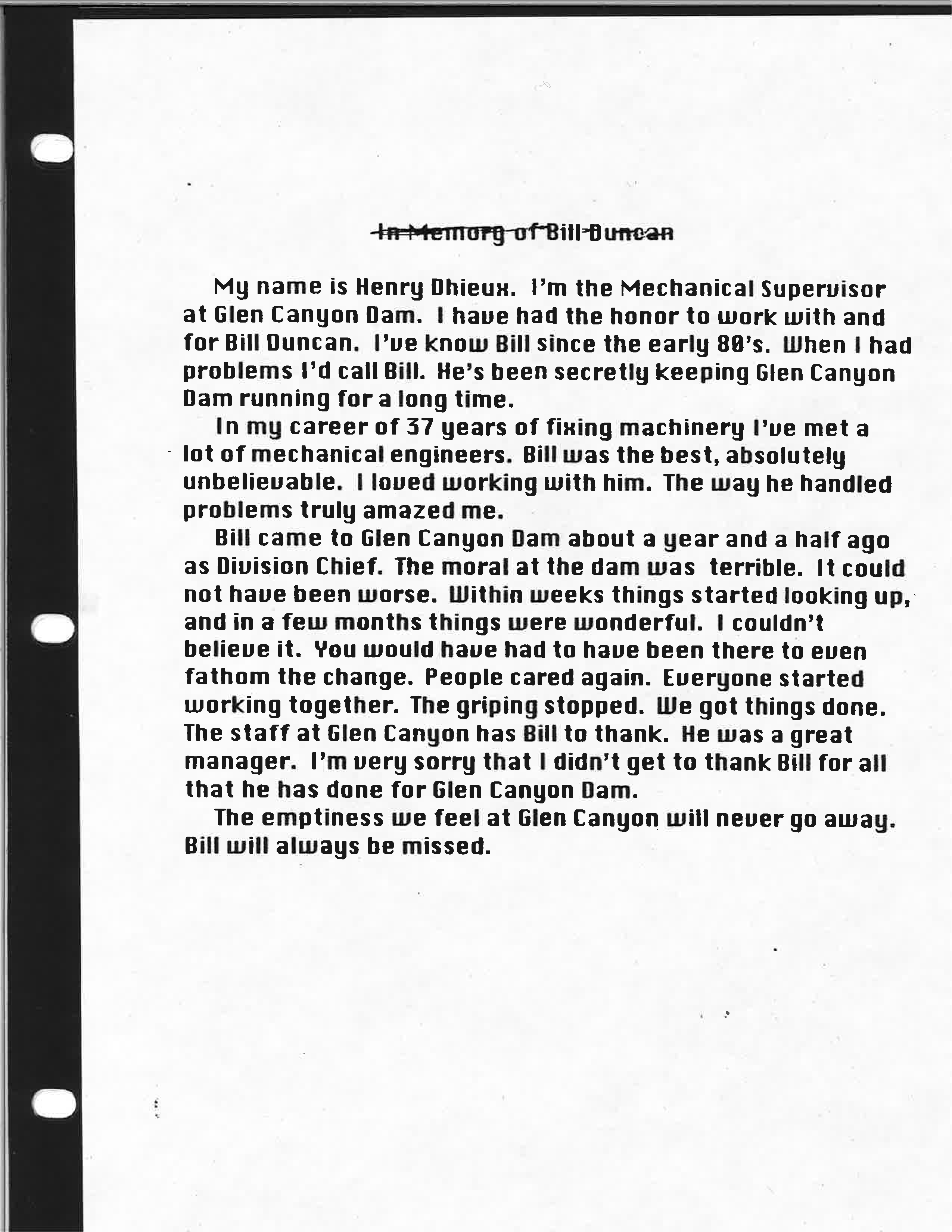 Thank you to Reclamation's Power Office and Glen Canyon Dam Field Division for maintaining and providing archived memorial materials