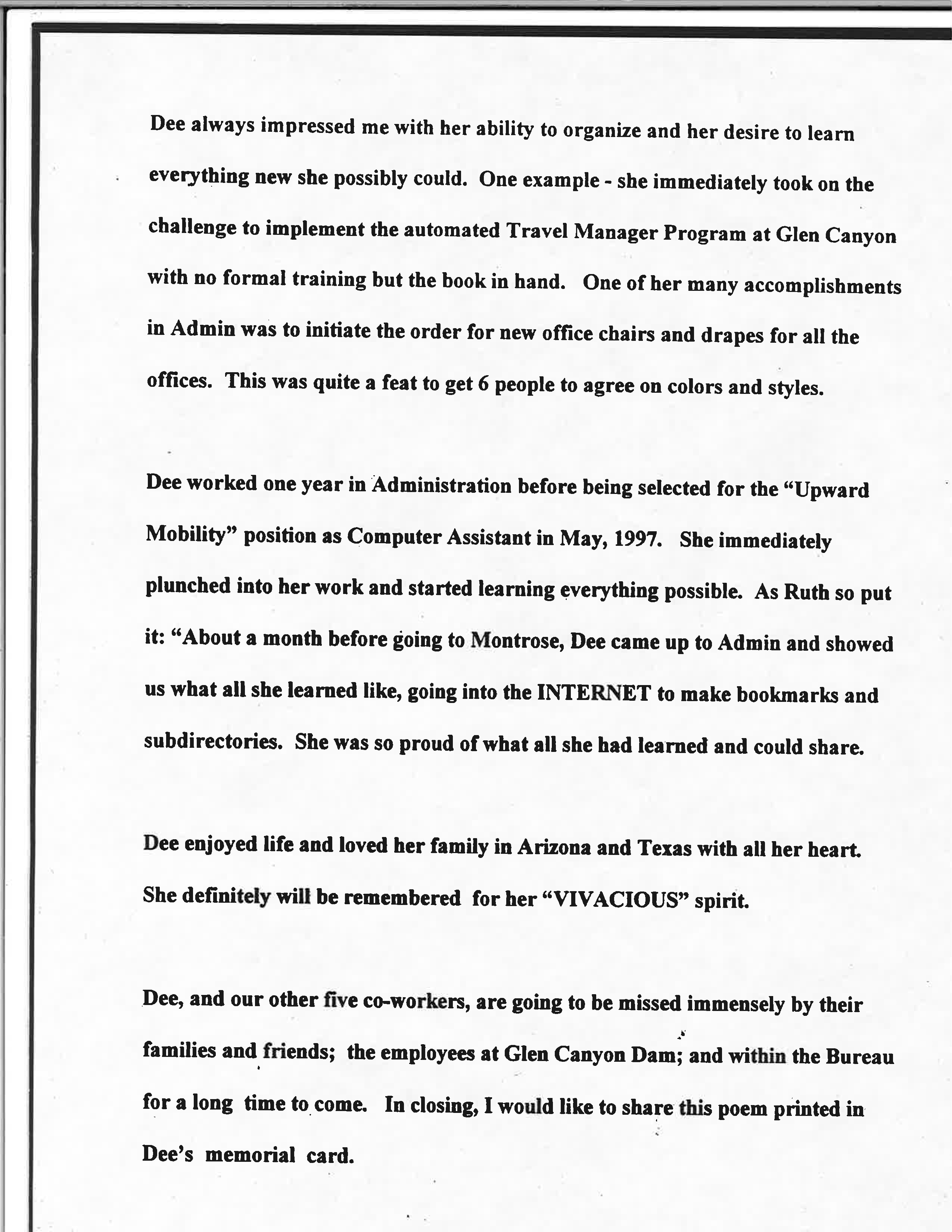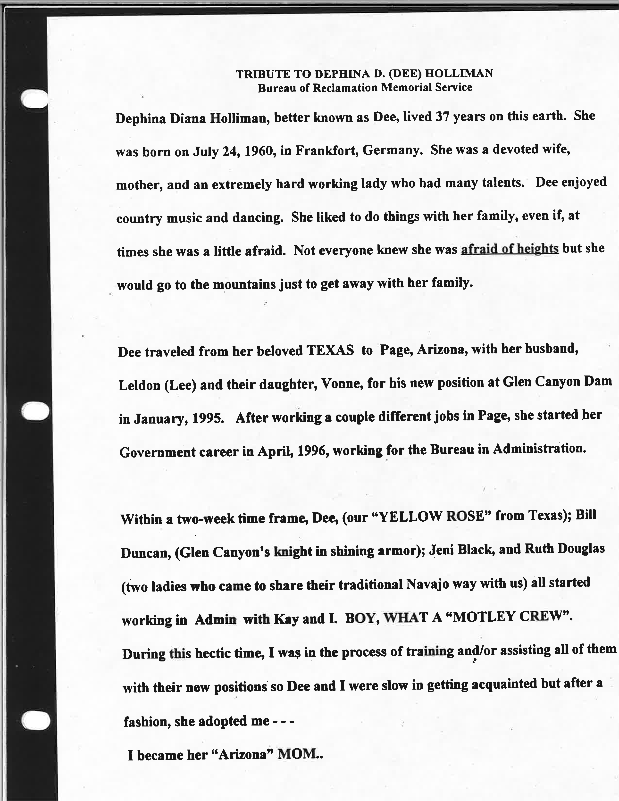 Dee Holliman, Computer Assistant, Glen Canyon Field Division