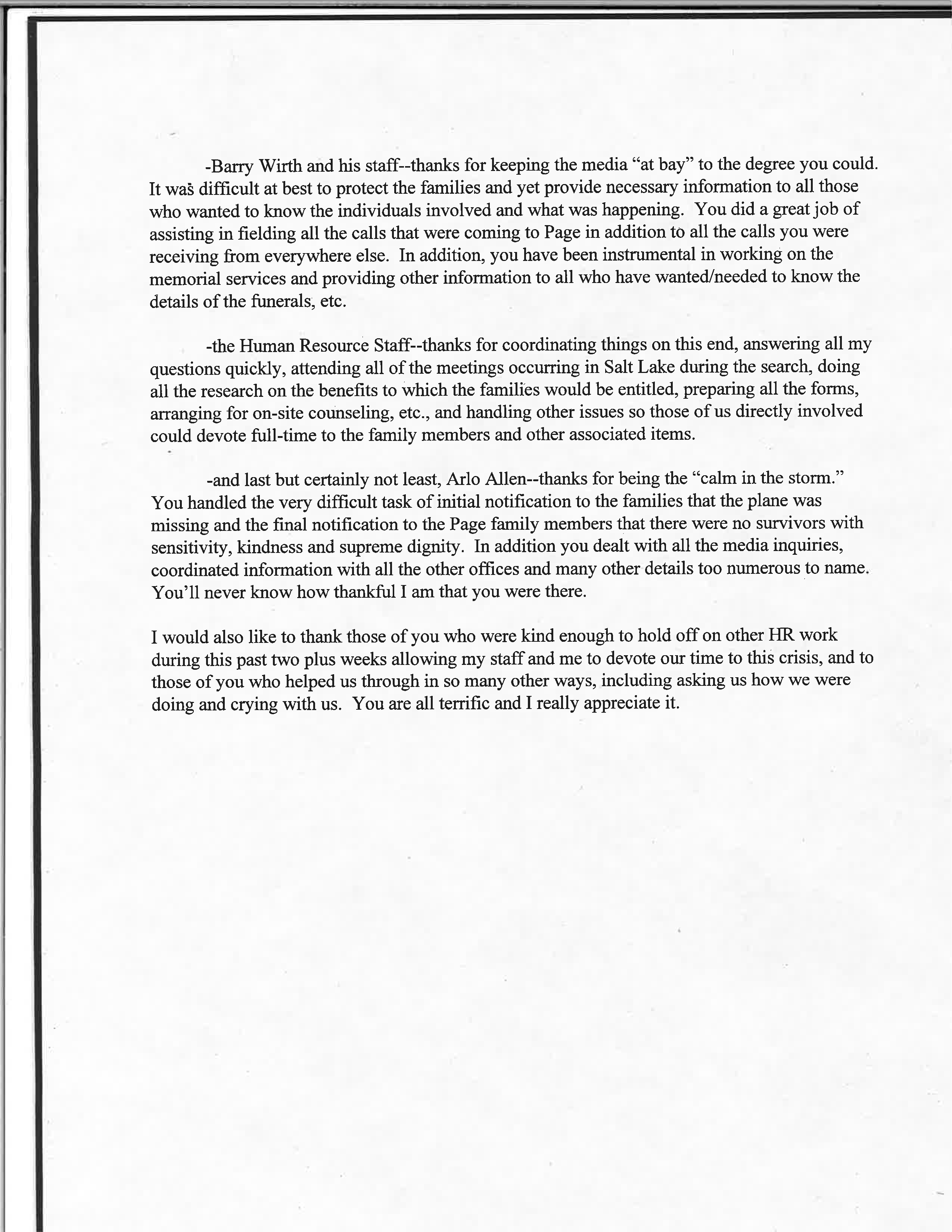 Our hearts go out to each of you, as well as the people of Montrose, Colorado, and Page, Arizona, as you now strive to cope with this devastating loss. We are keeping all of you in our thoughts and praying for your strength and comfort."