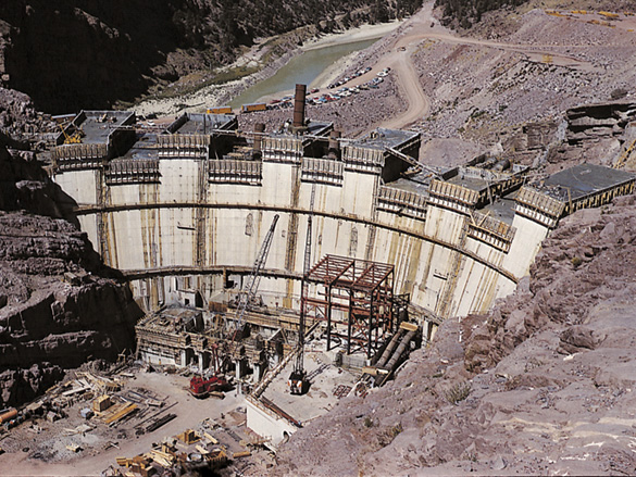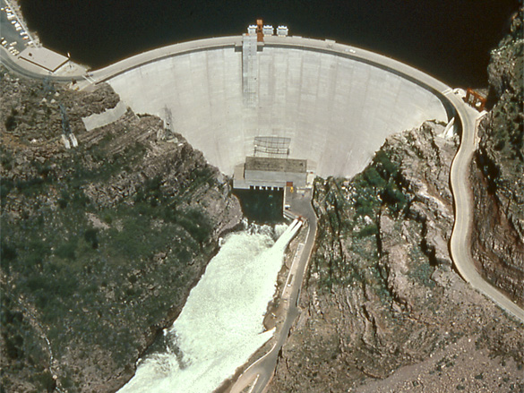 | Crest length ( arch length at axis of dam) | 1,285 feet (392 meters) |